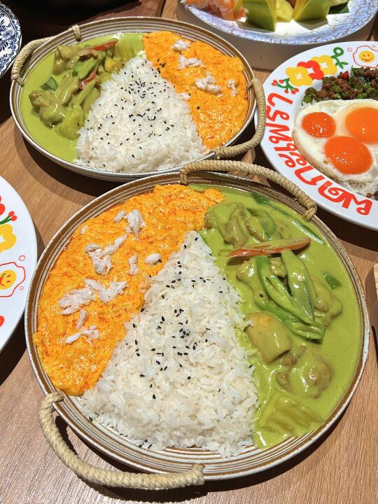三色咖喱饭颜值好高!一碗给的料也很足 ~两种 口味的咖喱拌在一起 浓郁十足!