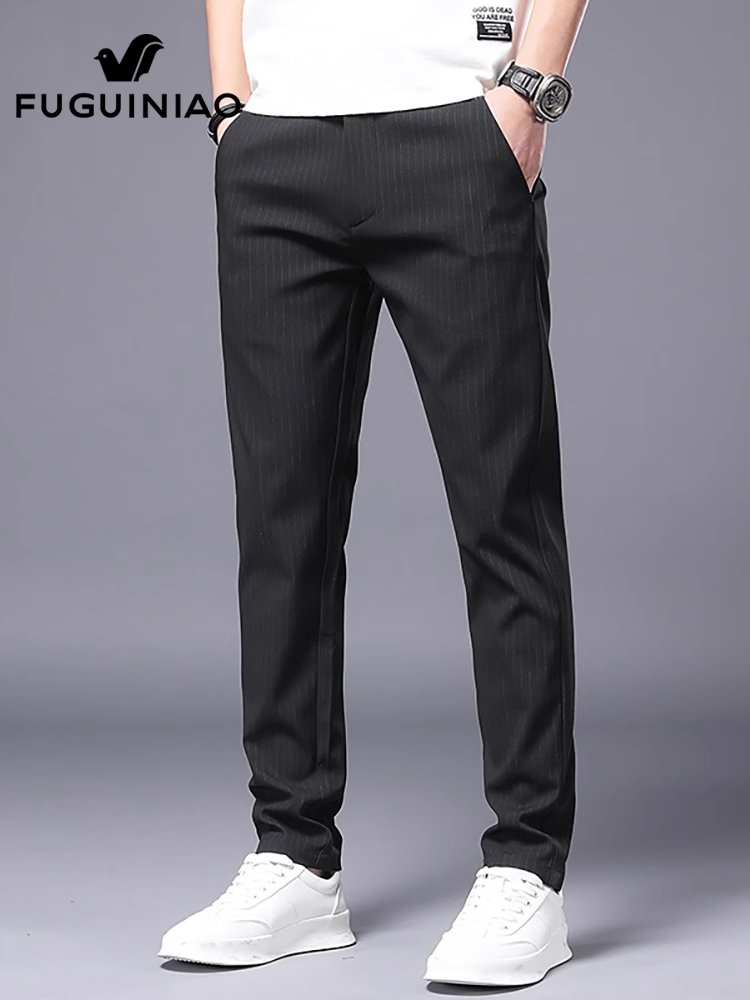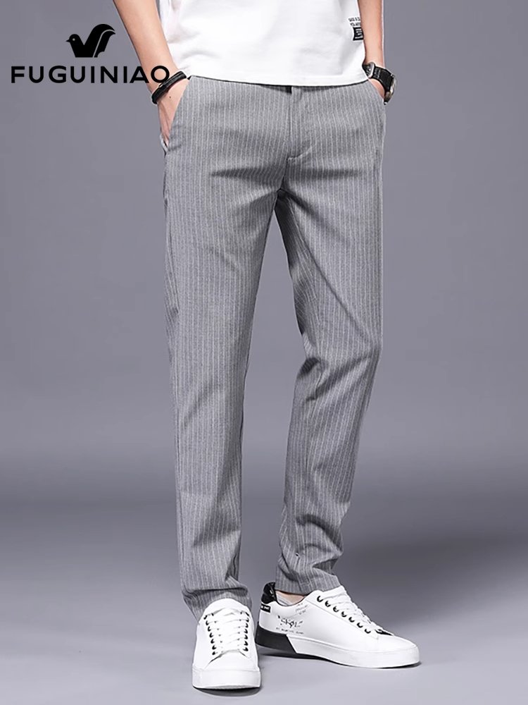 富贵鸟条纹休闲裤男士高级感商务西裤春季修身小脚长裤子男