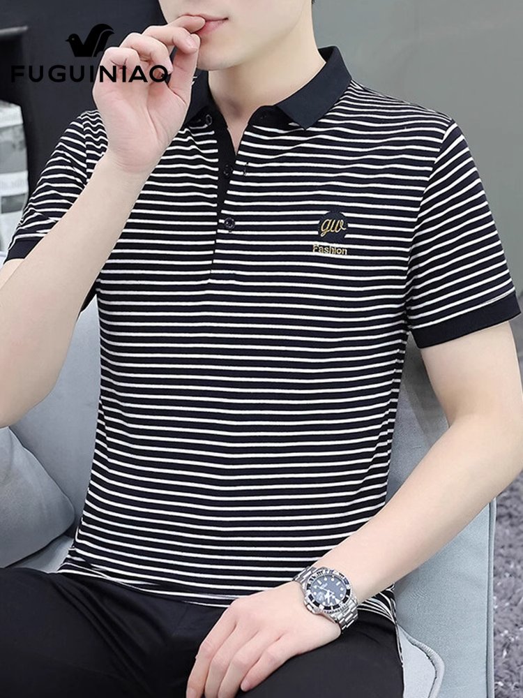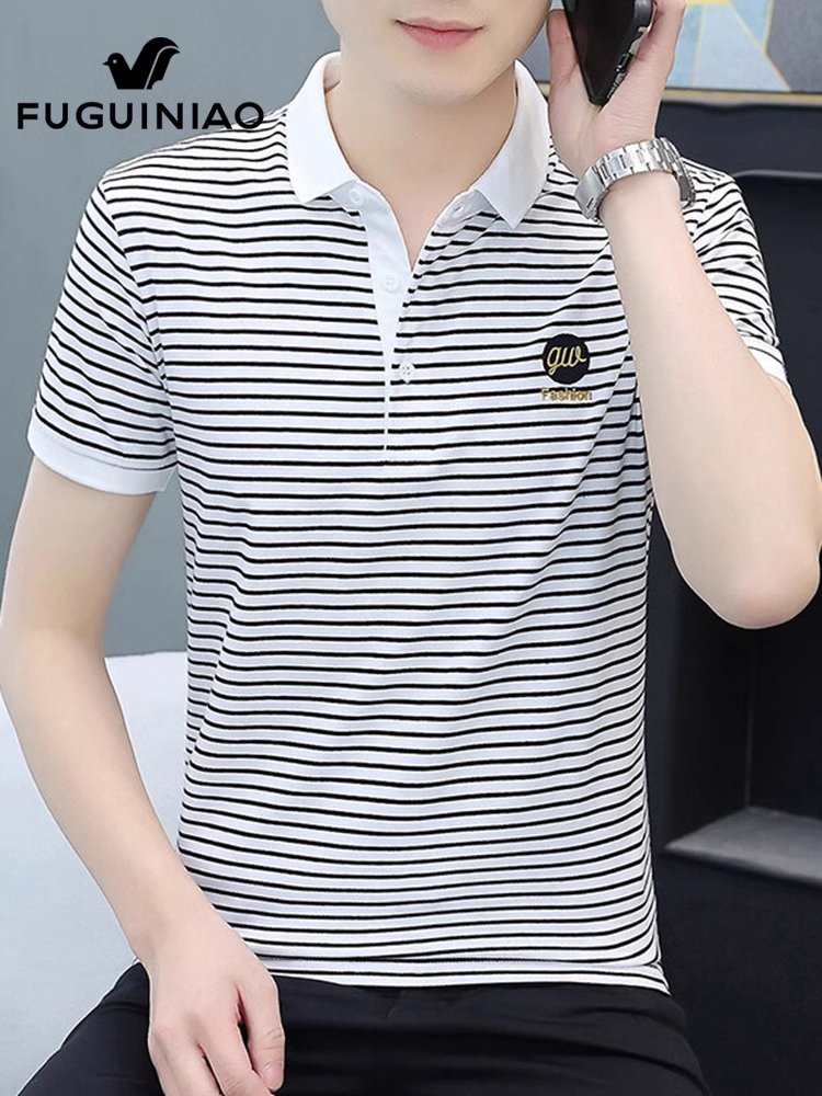 富贵鸟条纹Polo衫男士夏季翻领上衣服新薄款休闲短袖t恤男