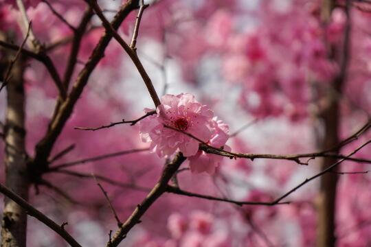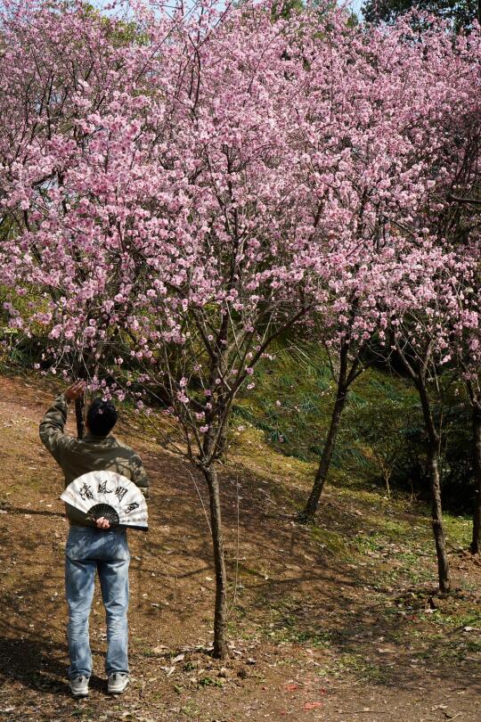 ▶️樱花林:从南门进入,粉红的樱花开满了山坡,有已绽放的、有含苞待放的。旁边就是海棠,这里也是植物园游客醉多的地方,不过拍照确实好看。