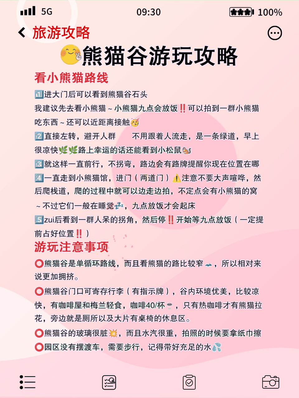 1️⃣ 熊猫谷是单循环路线,路窄人多要格外注意