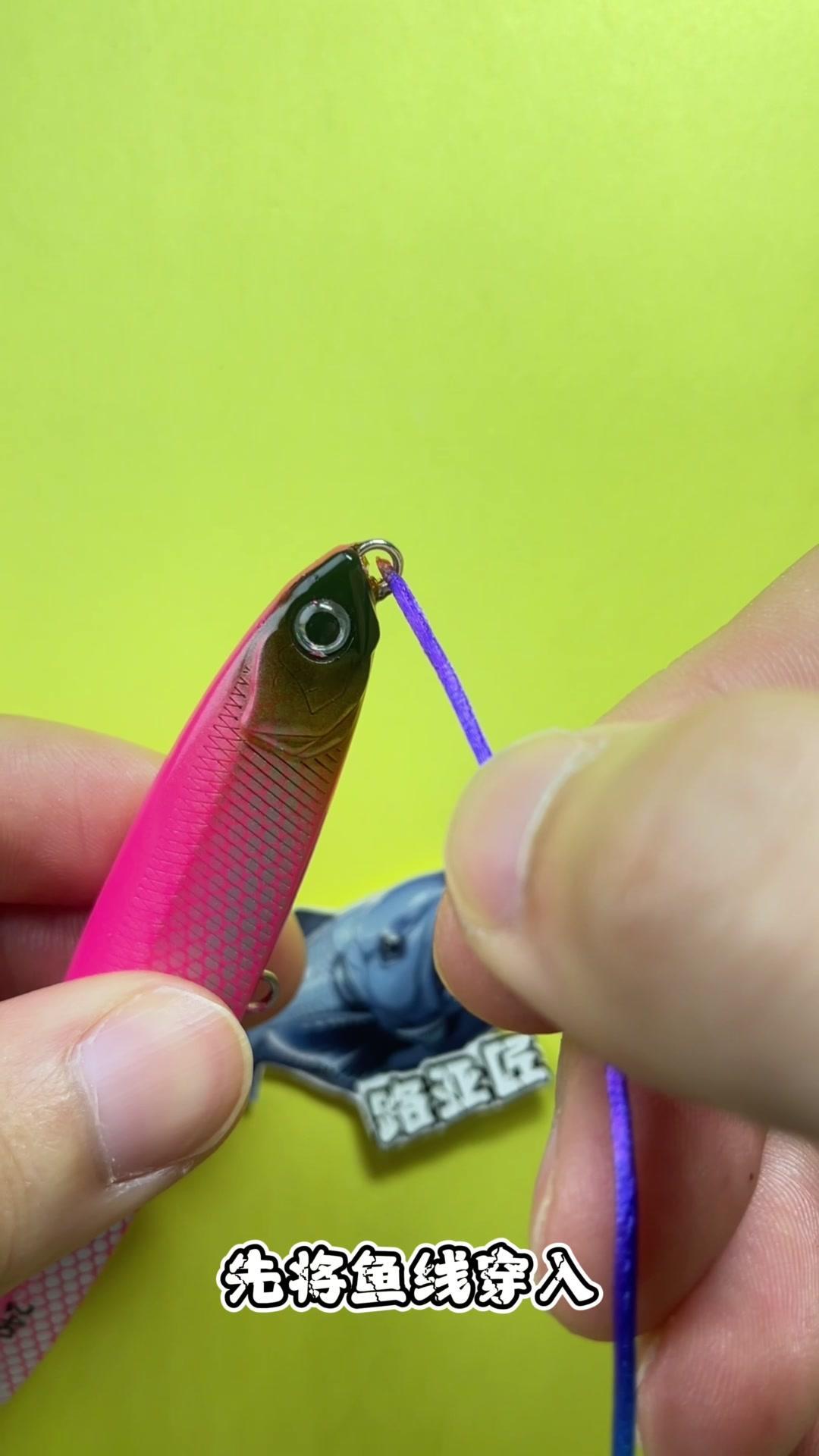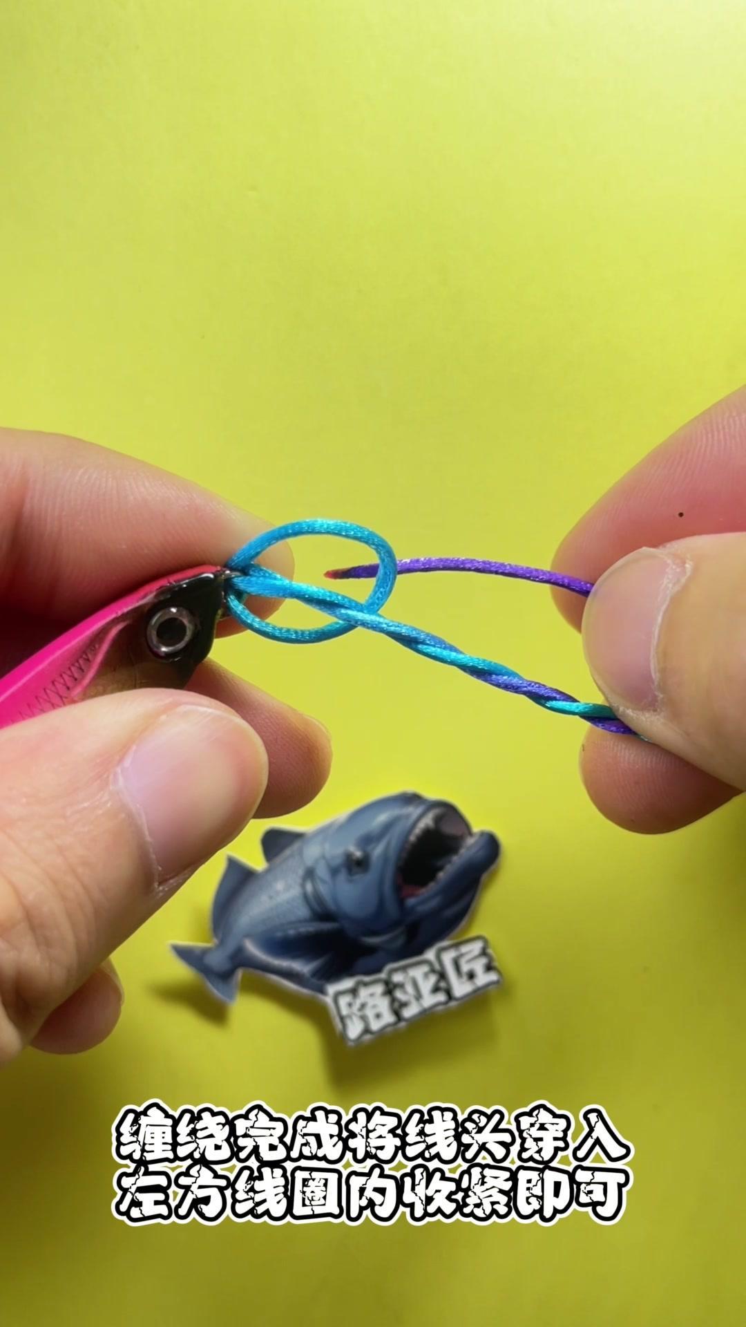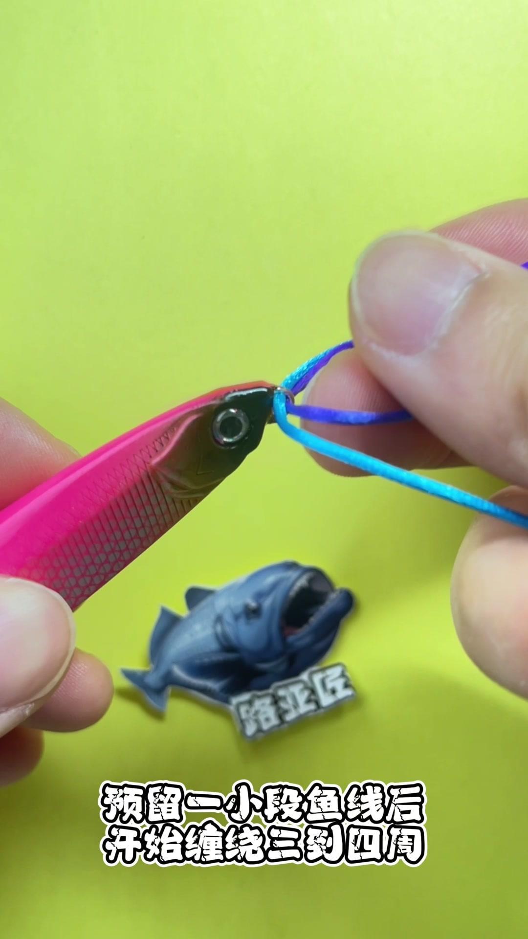 1️⃣将鱼线穿入铅笔孔中,然后再次穿入,预留一小段鱼线后开始缠绕3-4周。 2️⃣缠绕完成后,将线头穿入左方线圈内,收紧即可。 钓友们,你学会了吗?
