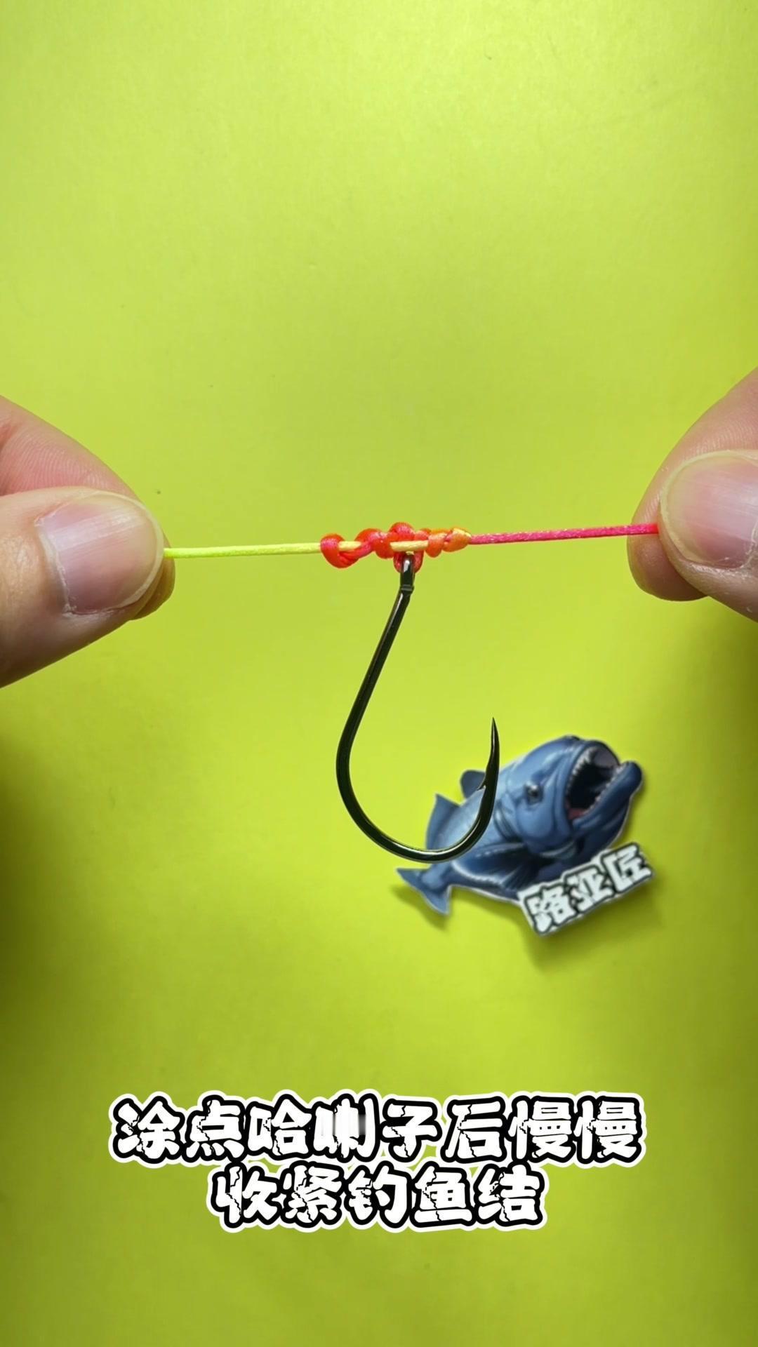 1️⃣将鱼线穿入,预留一段距离后,以鱼钩为中心绕圈。 2️⃣把上方鱼线相互缠绕6-8圈。 3️⃣缠绕完成后,把鱼钩穿入中间线圈,涂点哈喇子后慢慢收紧钓鱼线。 4️⃣大兄弟们,你们学会了吗?