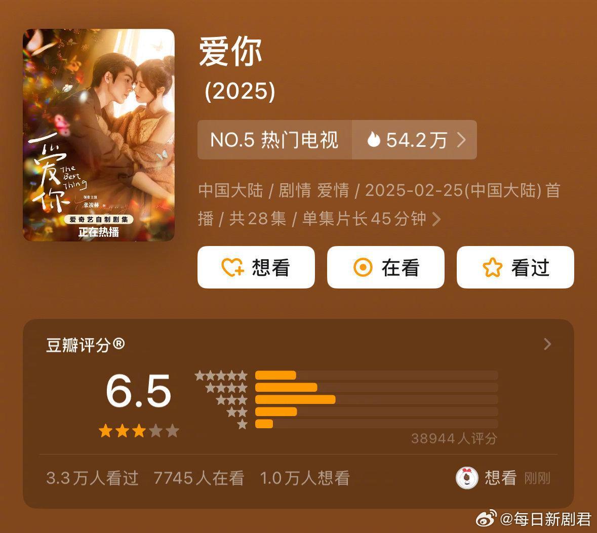 张凌赫、徐若晗《爱你》6.5