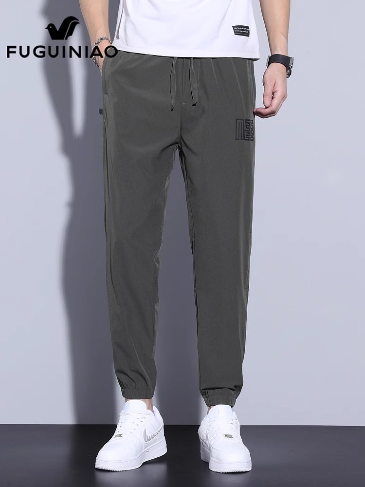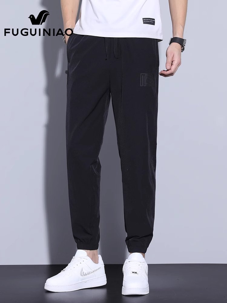富贵鸟冰丝休闲裤男士束脚九分卫裤夏季新薄款宽松运动长裤子男款
