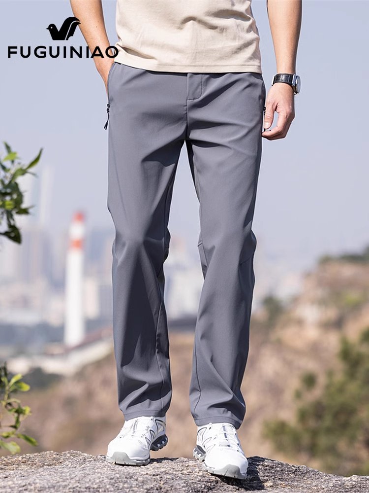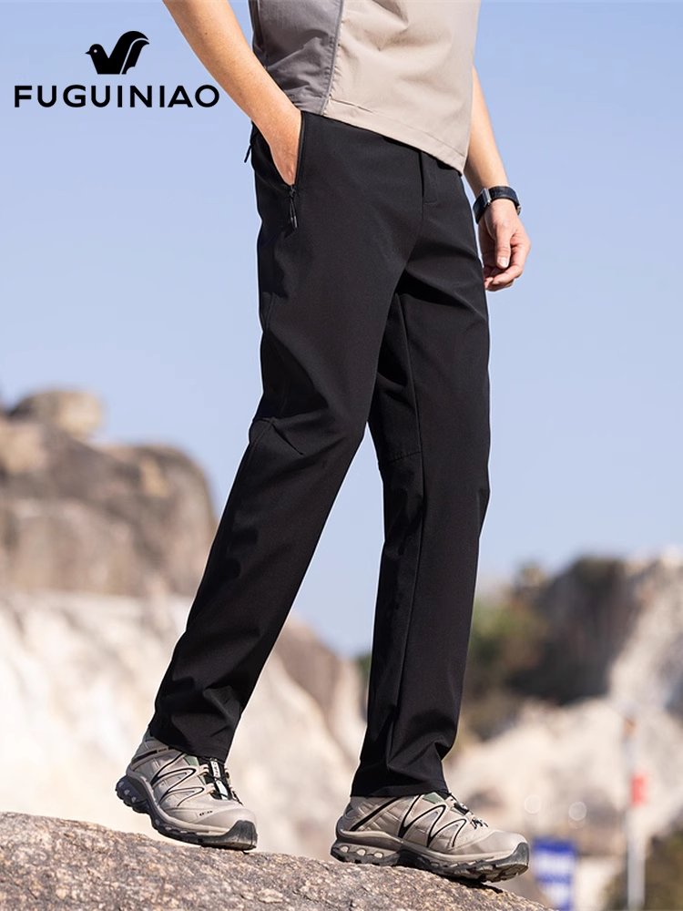 富贵鸟黑色休闲裤男士春季直筒宽松运动裤新款弹力长裤子男
