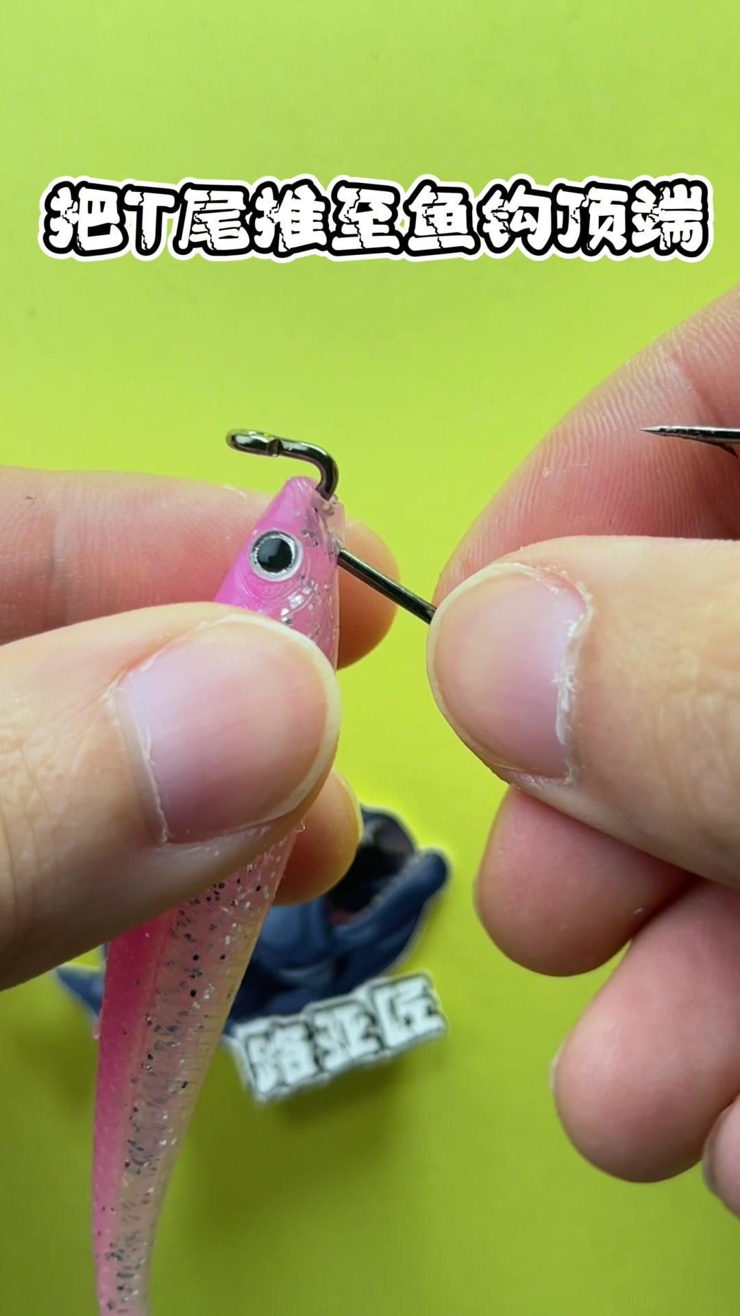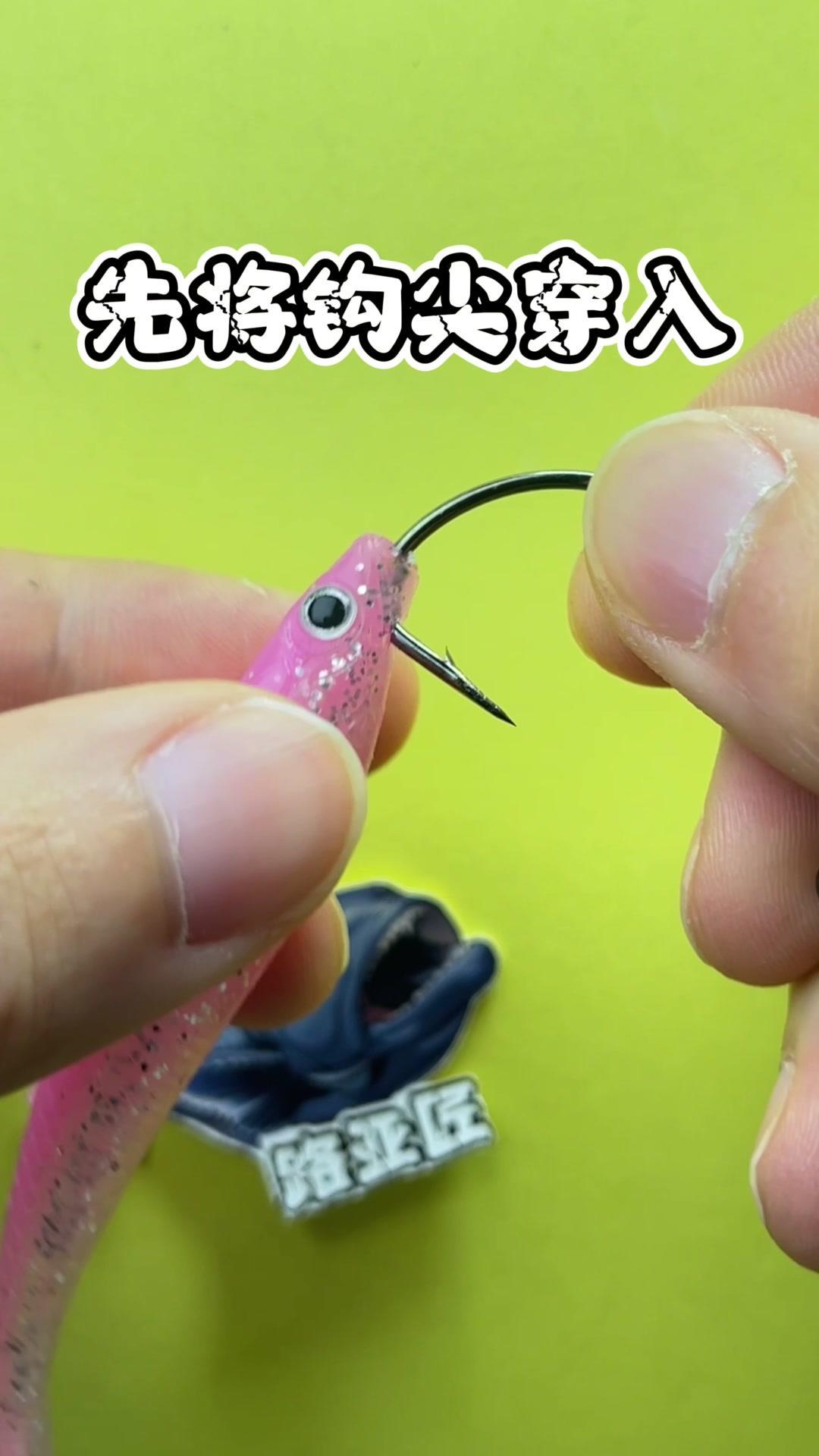 1️⃣将钩尖穿入,梯位推至鱼钩顶端。 2️⃣旋转180度,比对钩身长度后穿入。 你看,这么简单的步骤,你学会了吗?