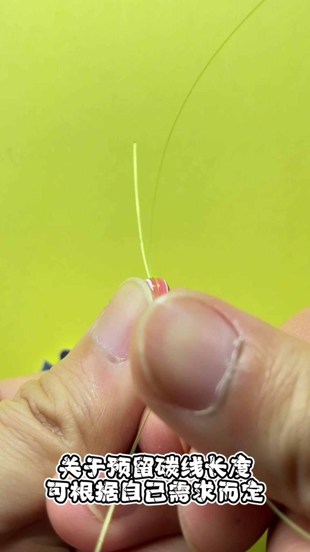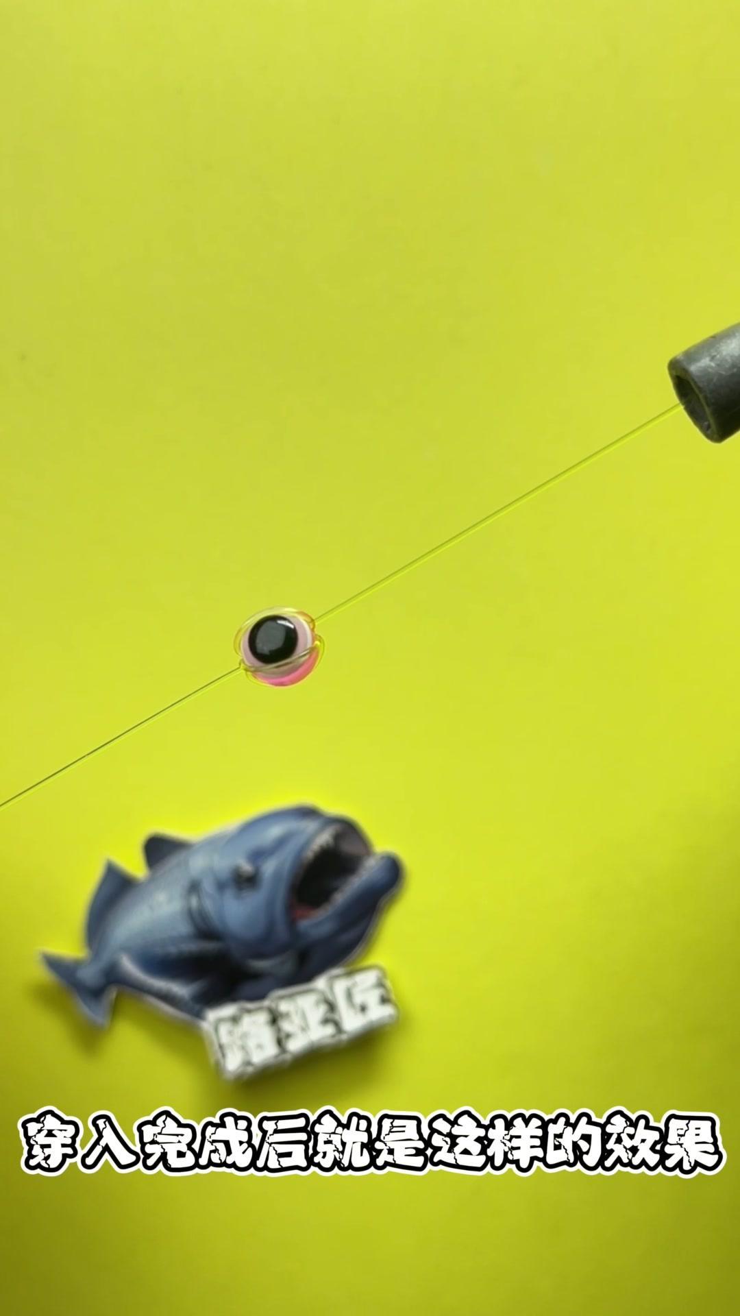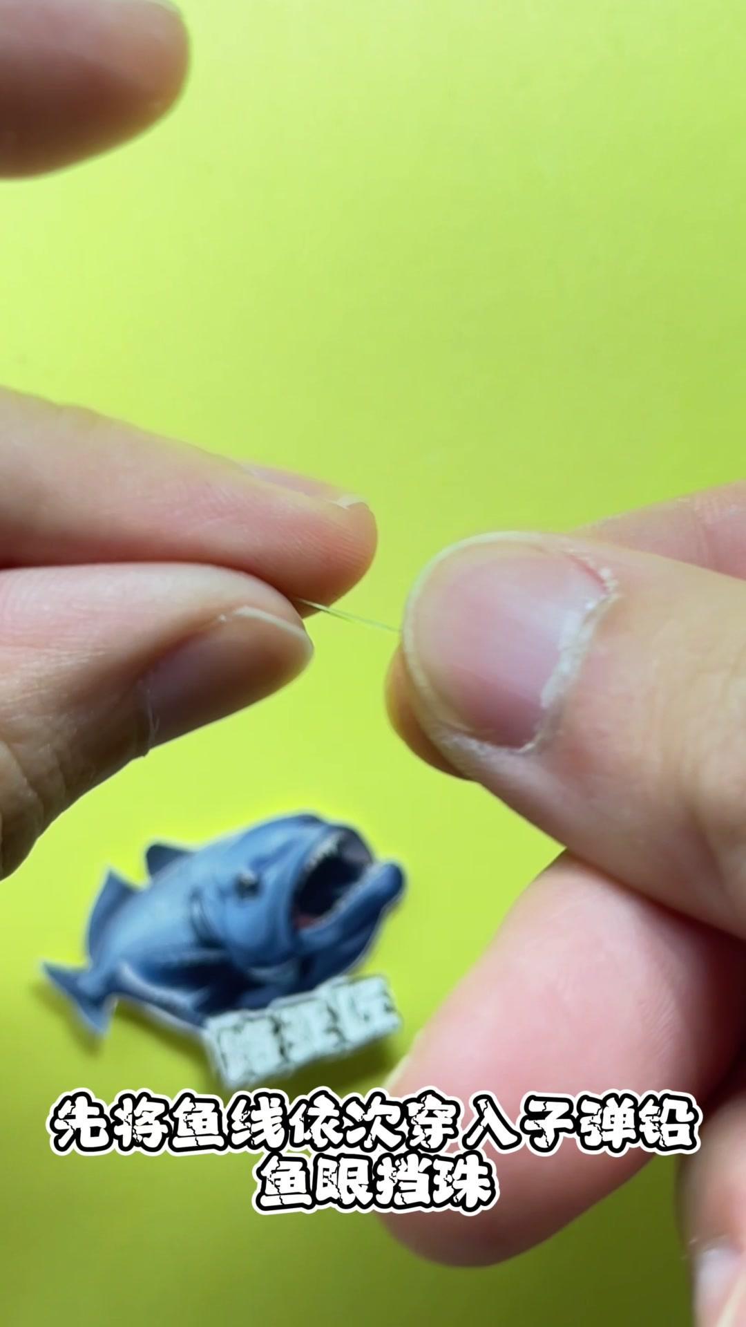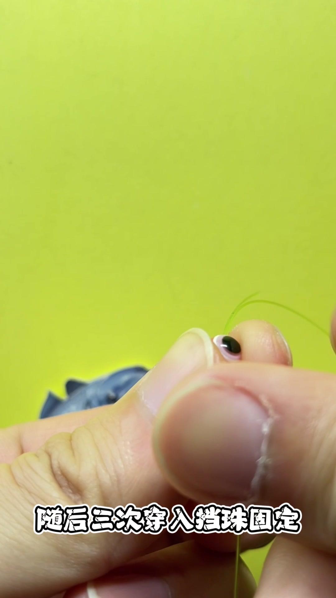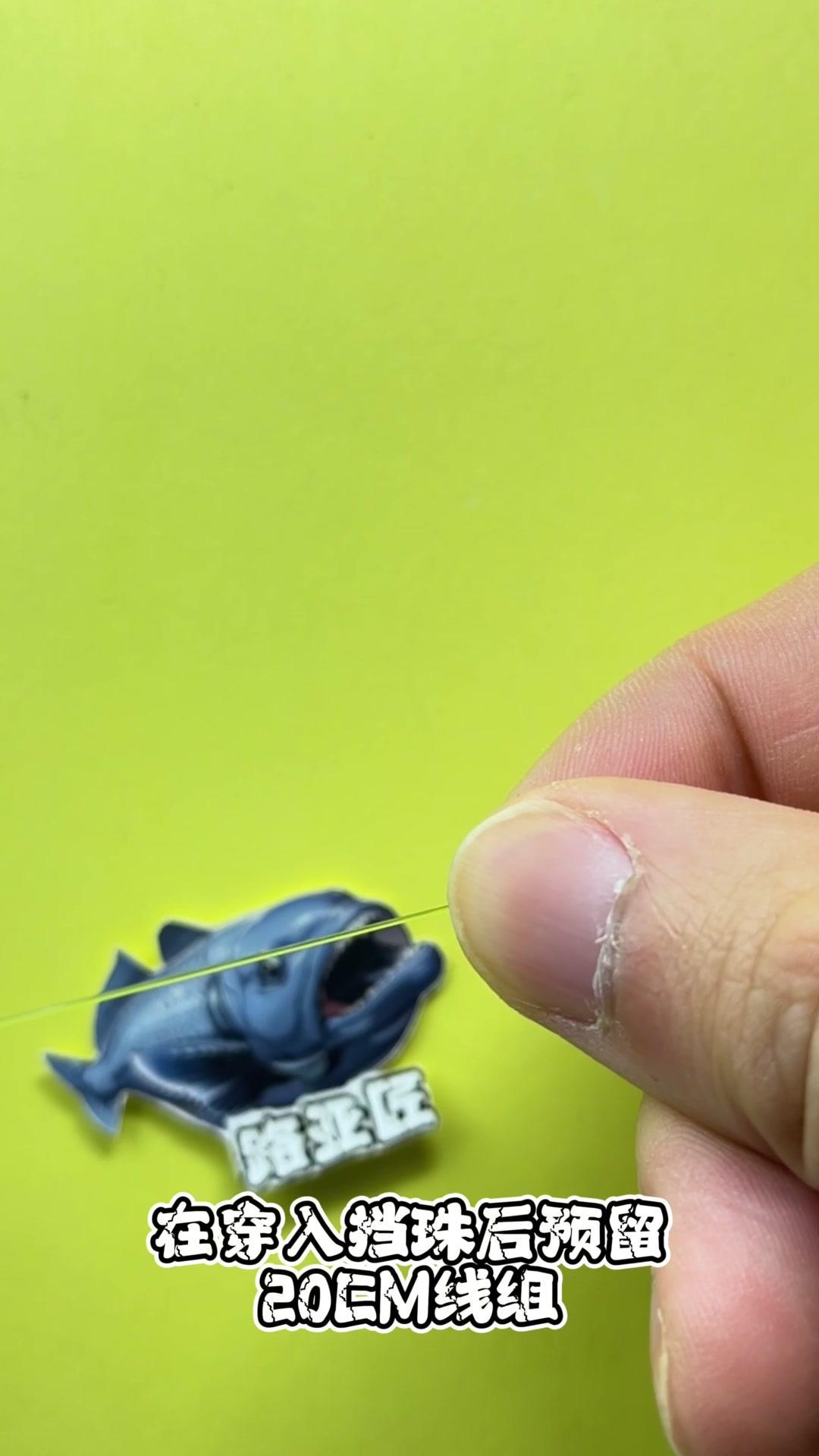1️⃣将鱼线依次穿入子弹圈、鱼眼挡珠,再穿入挡珠后预留20厘米线组。 2️⃣三次