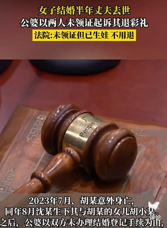湖北,女子未领证就与男子办了婚礼,恩爱地生活在一起,并怀了身孕。一场意外夺去了男子的生命,女子坚强地独自生下女儿,万没想到公婆说她未与儿子领证,让她归还89000元彩礼,未果后把他告上法庭。法院判决出乎意料!