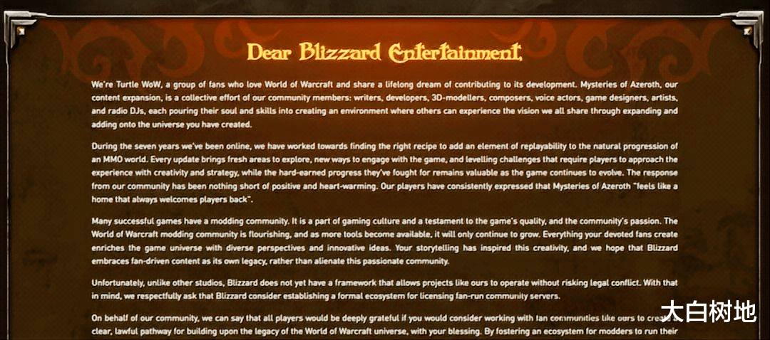 最近魔兽圈里出了件热闹事儿。以“60级经典版+自创玩法”而闻名的乌龟服,居然主动给暴雪写了一封公开信,说要“求授权”,以使粉丝做的Mod和私服框架合法化。这事儿一出,玩家群里炸开了锅,有人拍手叫好,也有人摇头称“太天真”。