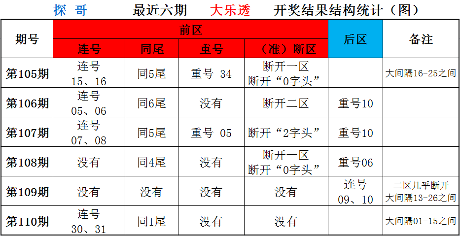 开奖号码结构:前区一对连号30、31,一对同尾01、31,没有重号。