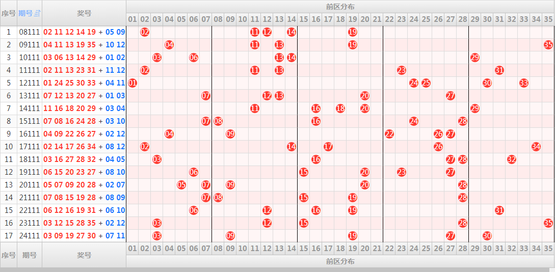 六、历史同期,前区开奖结果和走势图(历史数据演示):
