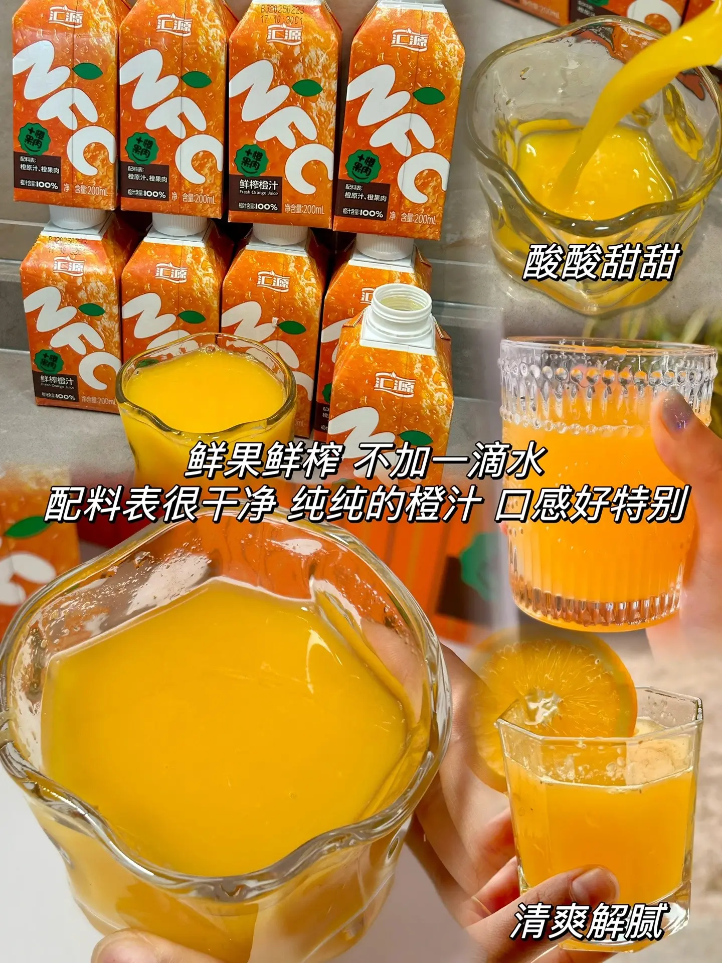 哇塞~汇源NFC橙汁真的巨巨巨好喝!不添加一滴水,喝起来酸酸甜甜的清爽又解腻,配料表干净,口感巨鲜,入口就像空口嚼橙子,纯纯的橙汁,真的爱了!