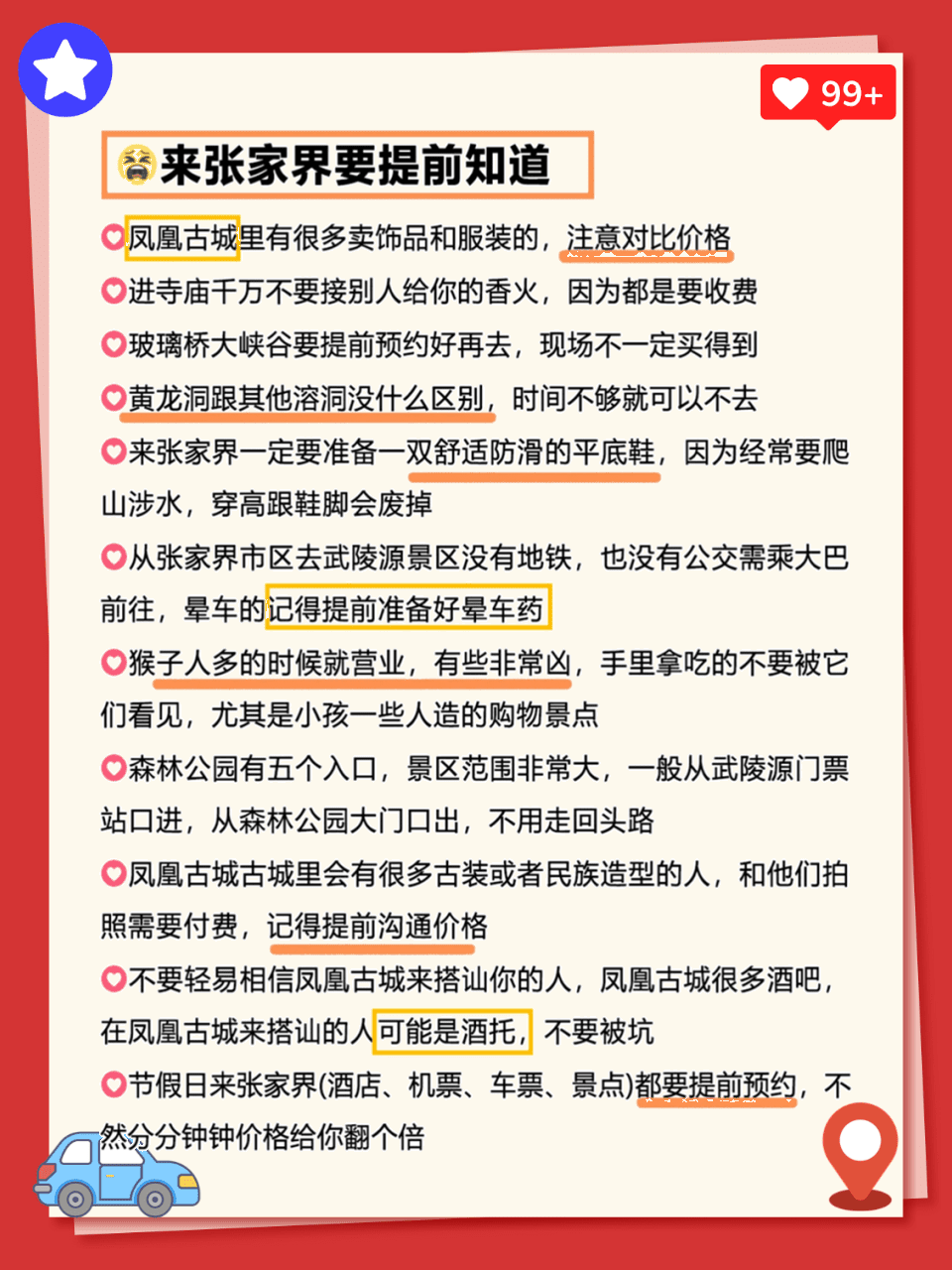 🔸 天门山海拔1500米,温差大,建议带件外套