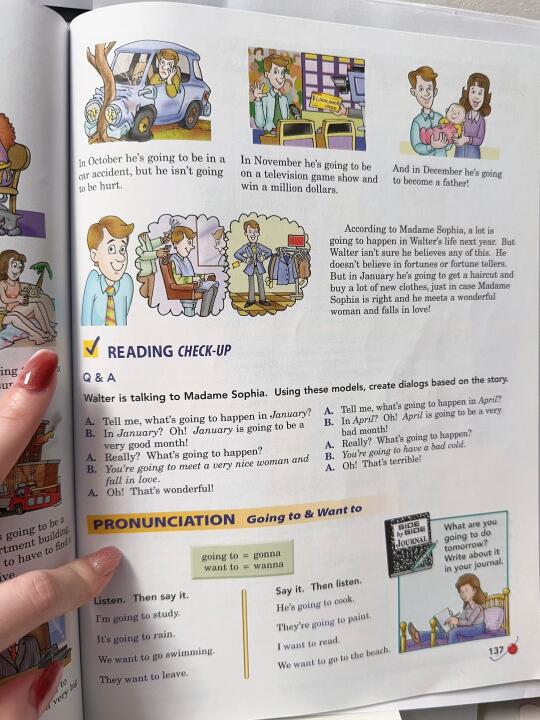 嗯,如果每篇课文都这么有意思,娃应该就不愁背课文了😏sbs 教材还是有点贴地气在里面的,蛮好,各种场景都会说了。。。[萌萌哒R]