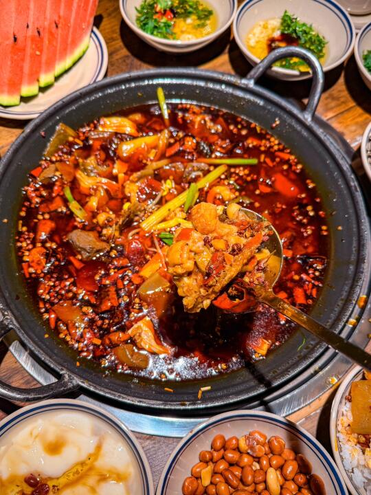 不允许还有人没吃过这家川厨令豆花鱼火锅!姐妹带我去的这家,直接给我俩香迷糊了,我俩一致认为这是本月吃的最值的一顿! 一上桌浓郁醇厚的红油汤底就让人直咽口水🤤满满一锅鲜嫩鱼肉和软嫩豆花瞬间打开食欲🌶️鱼肉都是活鱼现杀,嫩到入口即化,关键是一点腥味都没有🐟浸满了香辣鲜美的汤汁,越吃越上头 还有特色川味钵钵菜🍢浸泡在独特秘制的钵钵调料里🥦素菜清爽解腻麻辣鲜香,每一口都是地道川味 还有我超爱的冰豆花!搭配上香甜的糖浆🥣冰冰凉凉,在吃完火辣的火锅后来上一碗🔥驱散口中的燥热,店里还有免费的瓜子和西瓜🍉等餐的时候吃点瓜子唠唠嗑~ 价格更是亲民💰百元左右就能吃得饱饱的,性价比💯 学生党和打工人的福音无疑了!
