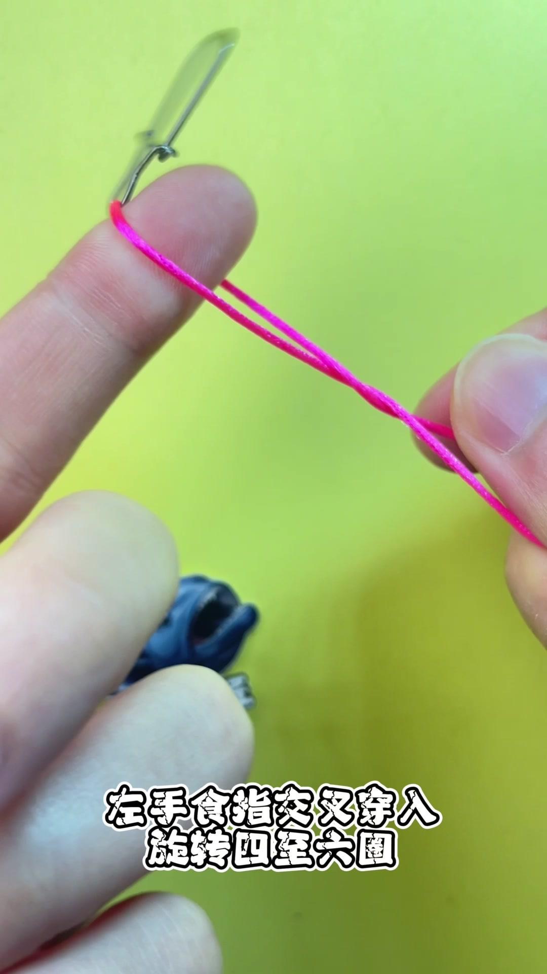 1️⃣将鱼线穿入别针,对折拉出。 2️⃣左手食指交叉穿入别针,旋转4-6圈。 3