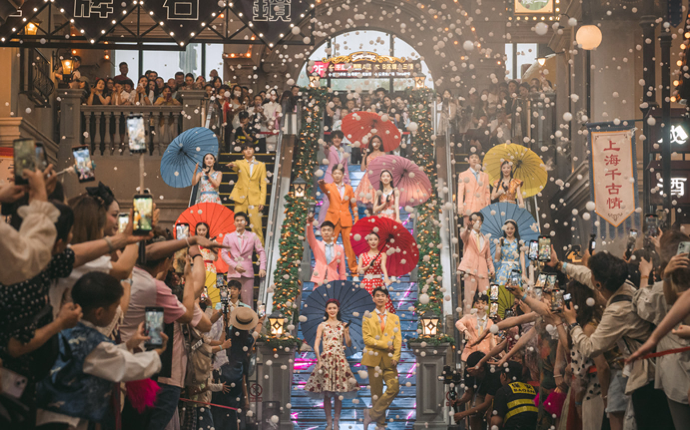 比如在电视剧《隋唐英雄传》中饰演李世民的演员郑国霖,在西安千古情景区做起了穿龙袍、坐摩托的NPC,不再是电视剧里高高在上的帝王形象,而是景区内与游客嬉笑对话的“玩伴”。还有在《情深深雨濛濛》中饰演“黑豹子”陆振华的演员寇振海,在上海千古情景区复刻了陆振华的经典造型,上一秒展现角色的威严霸气,下一秒突然跳起热舞,用反差感点燃现场。