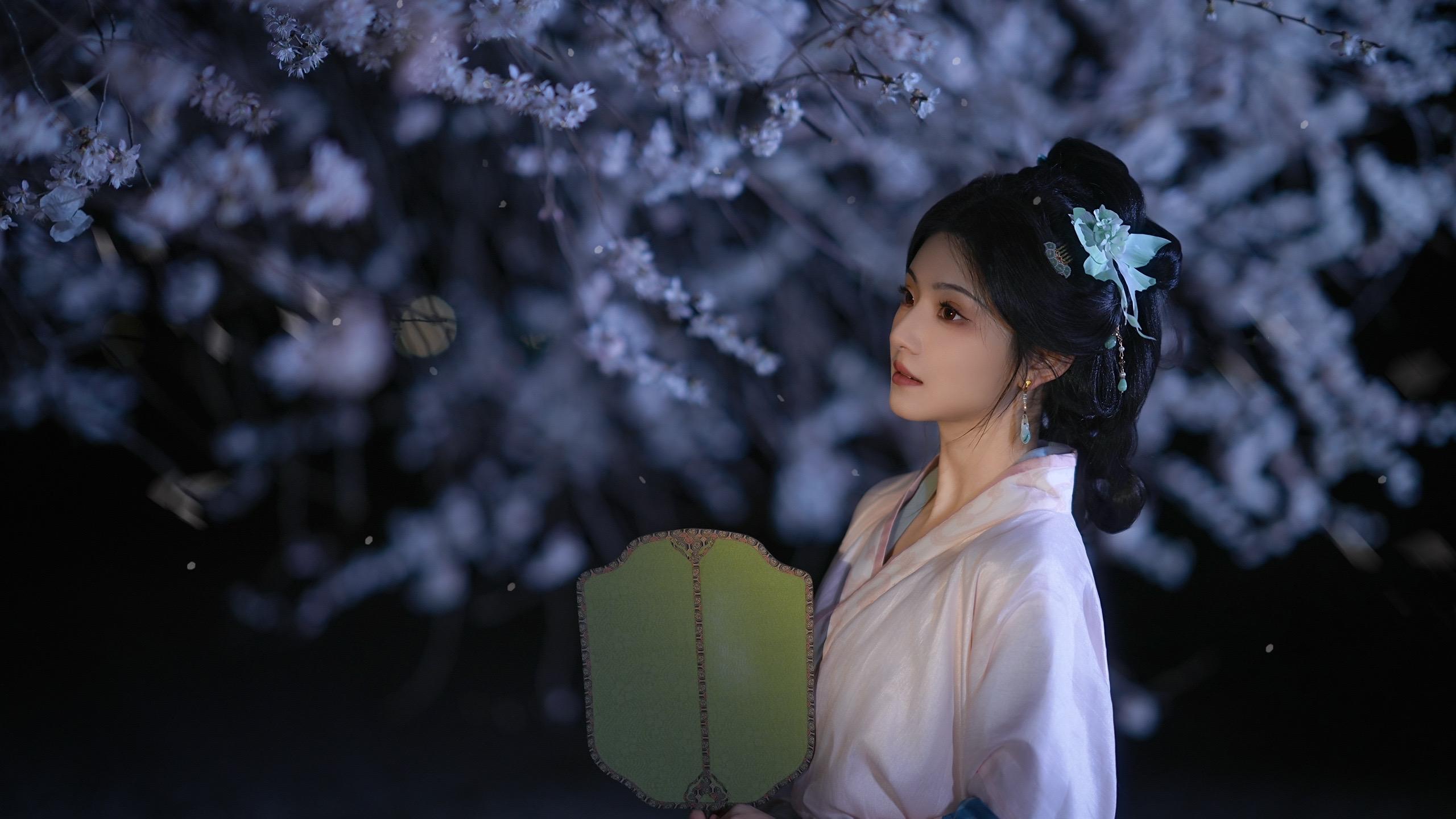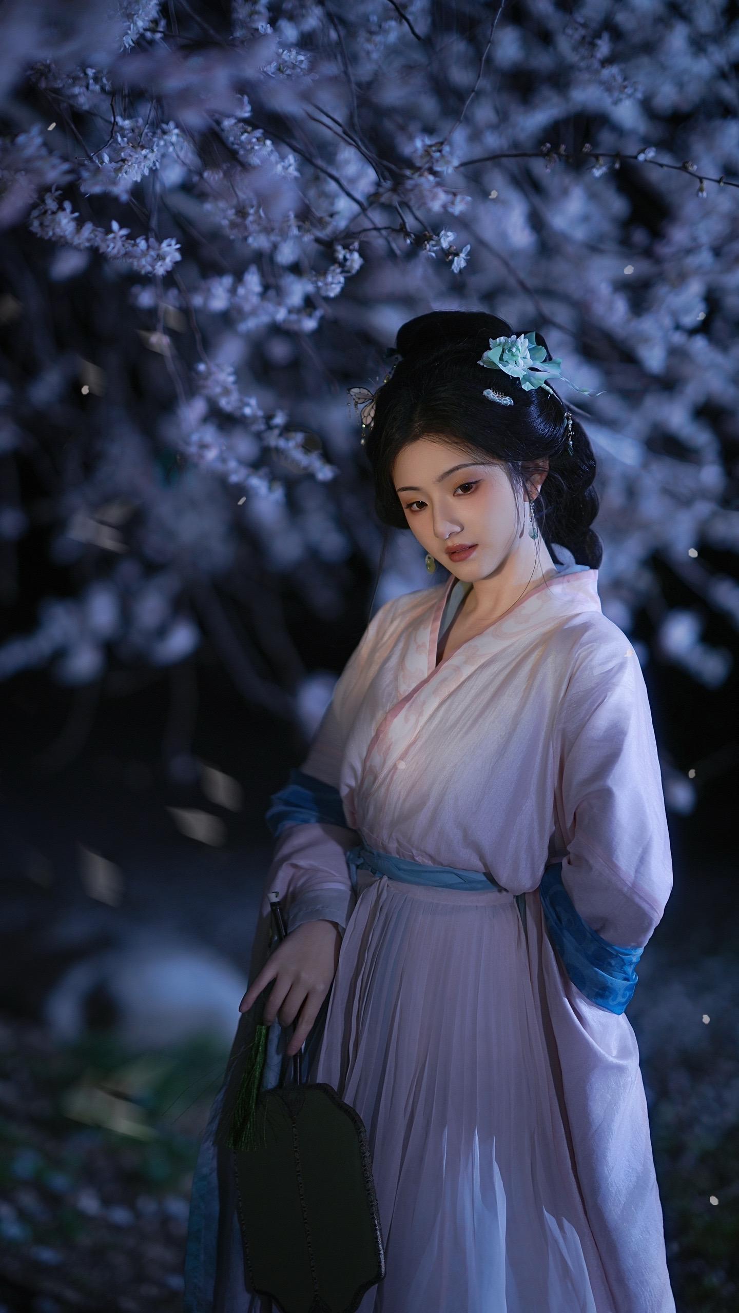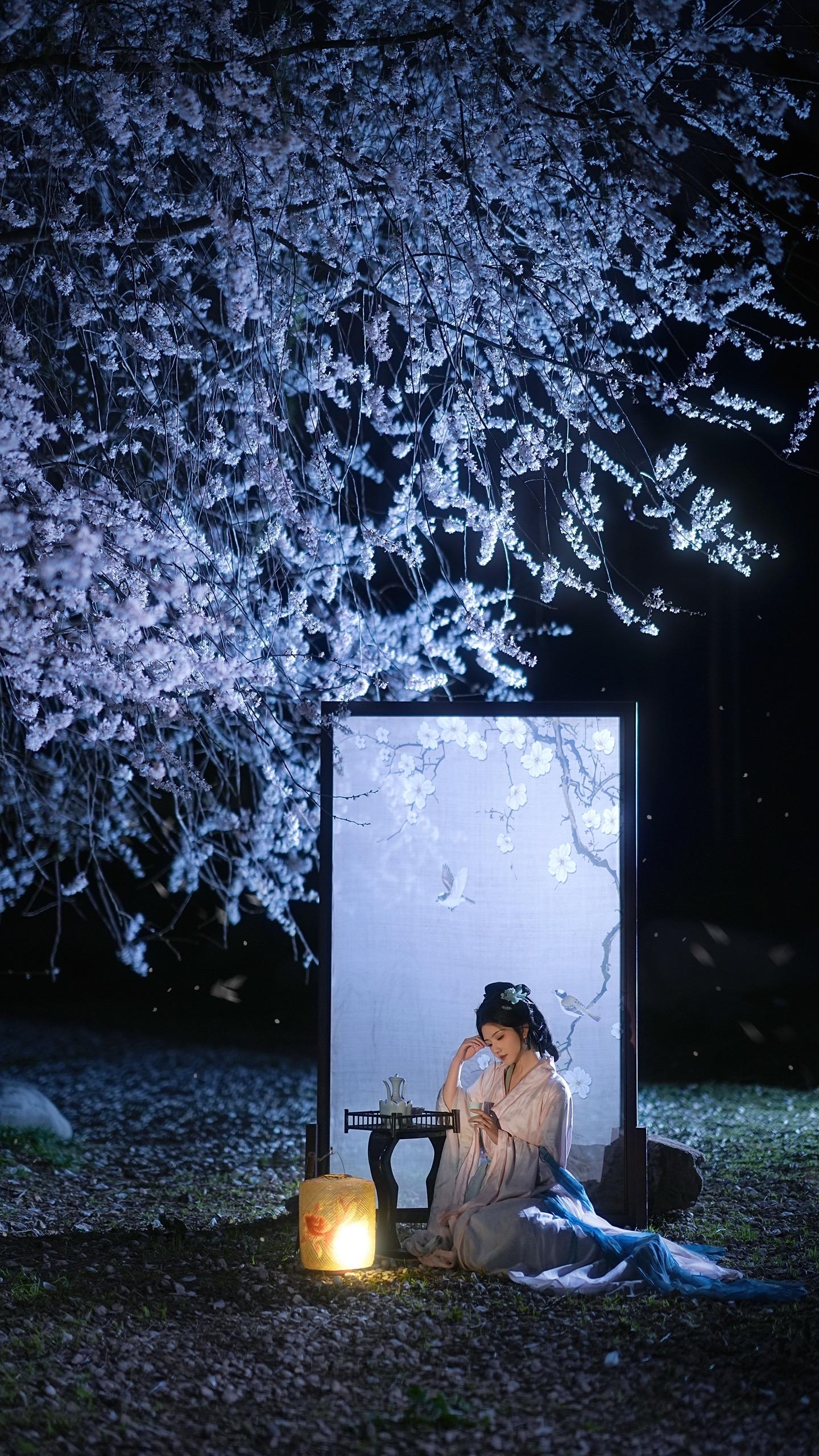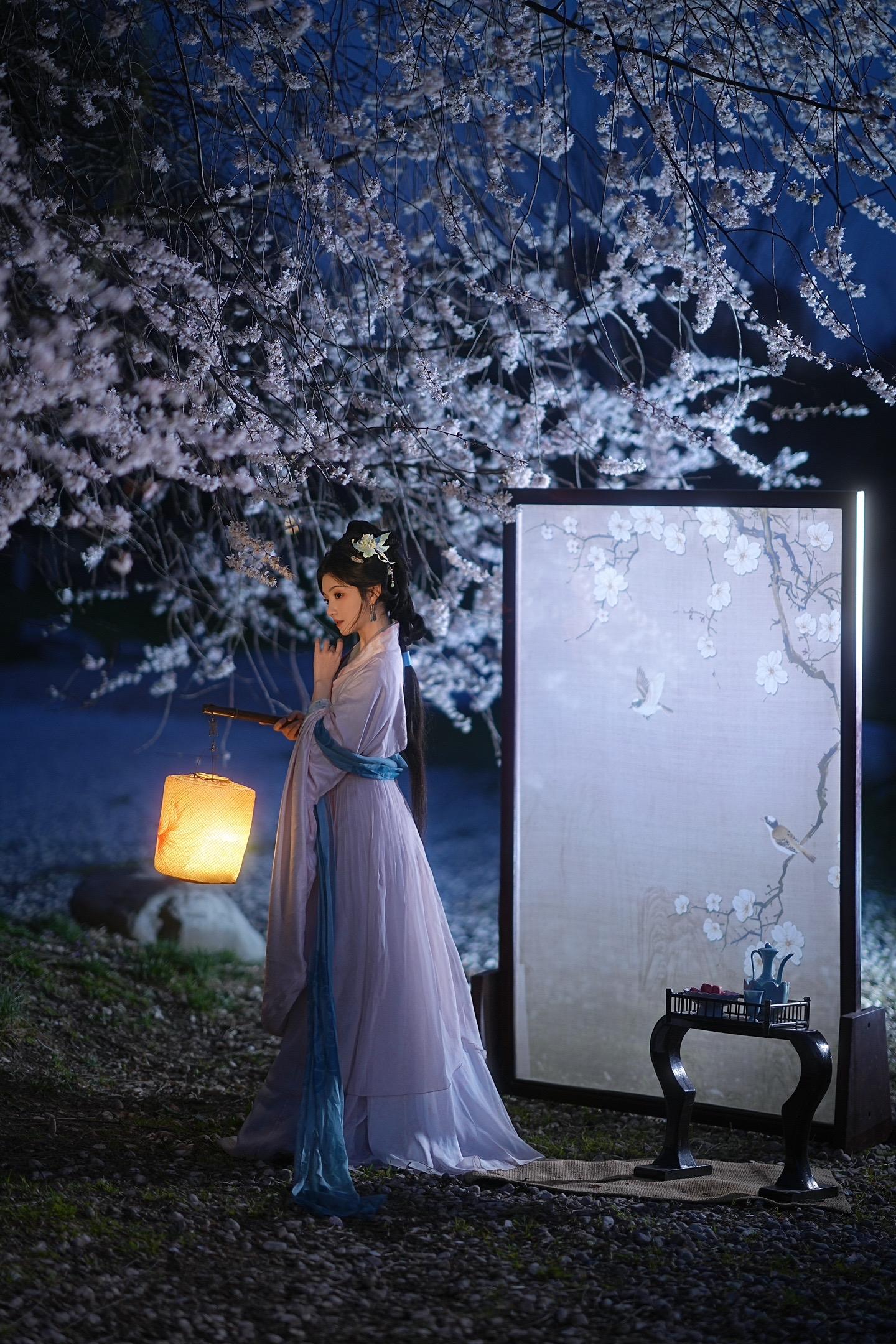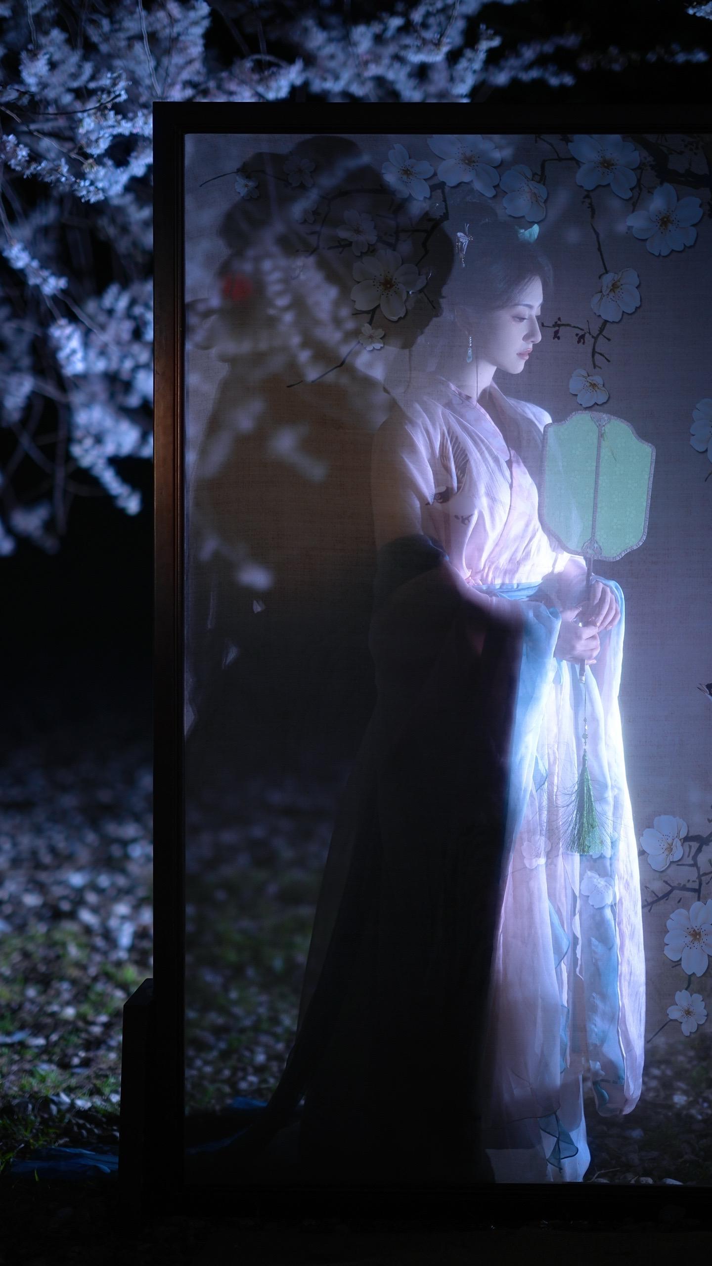 “月下独影绰绰”拍到了古画上的侍女与春色。