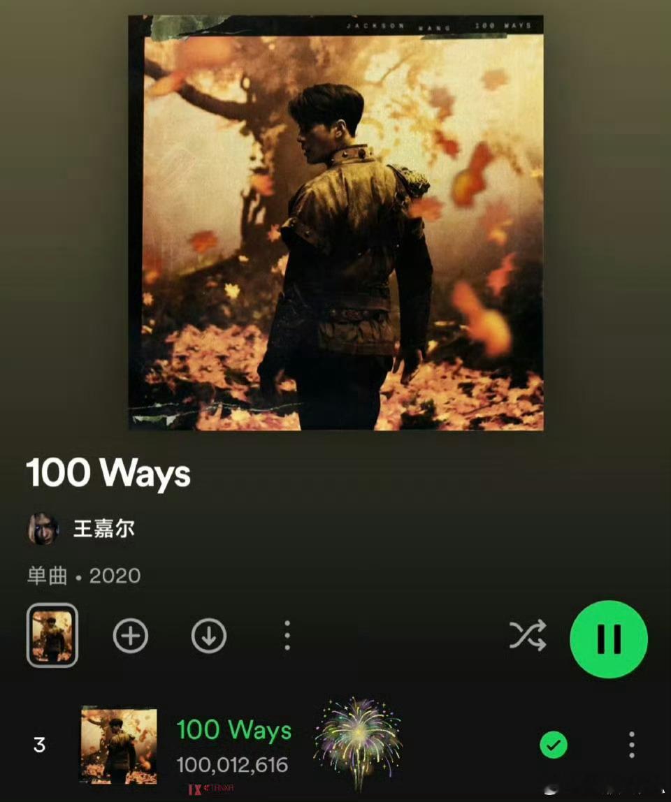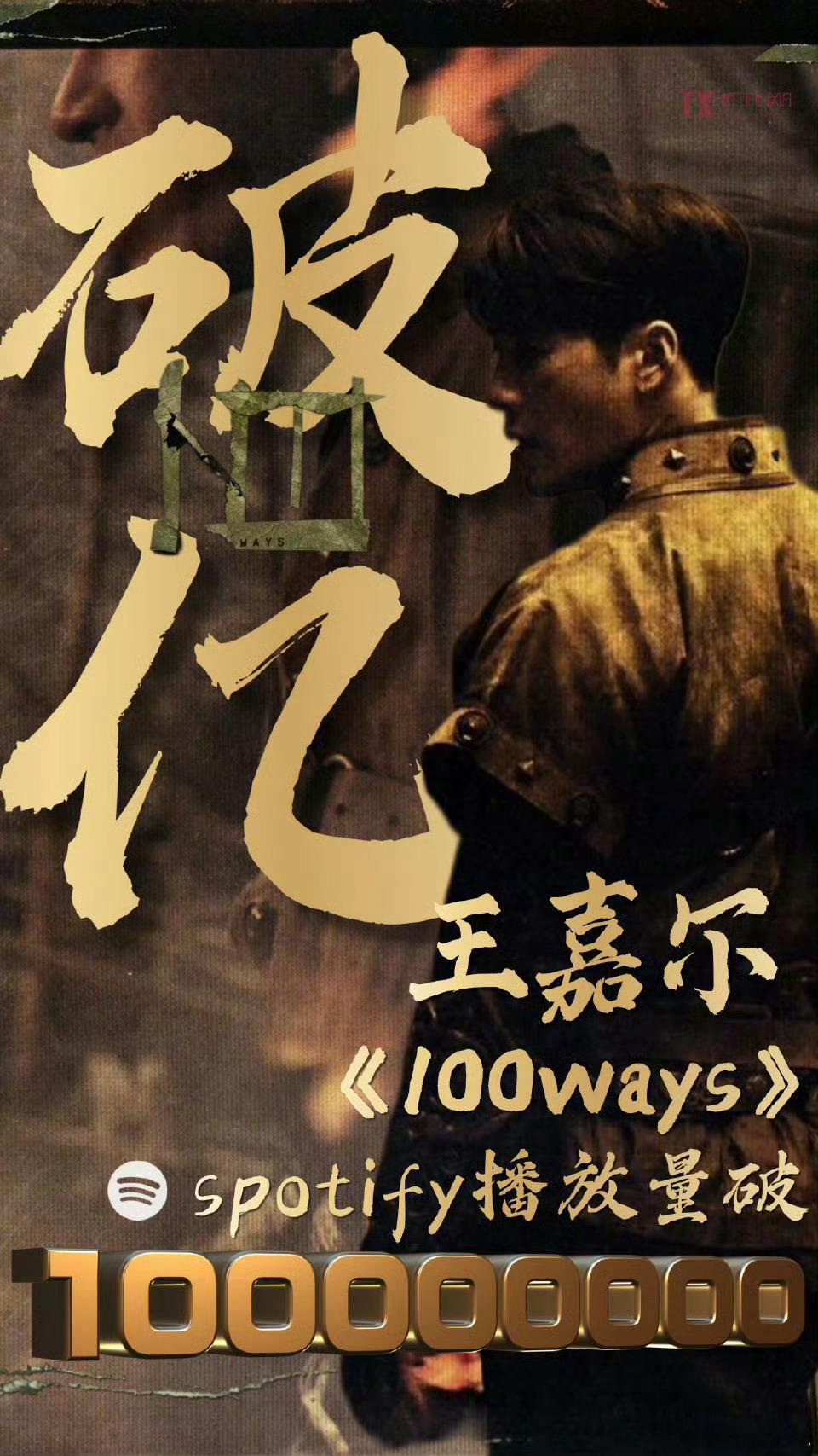 王嘉尔《100ways》Spotify播放量破亿🎉