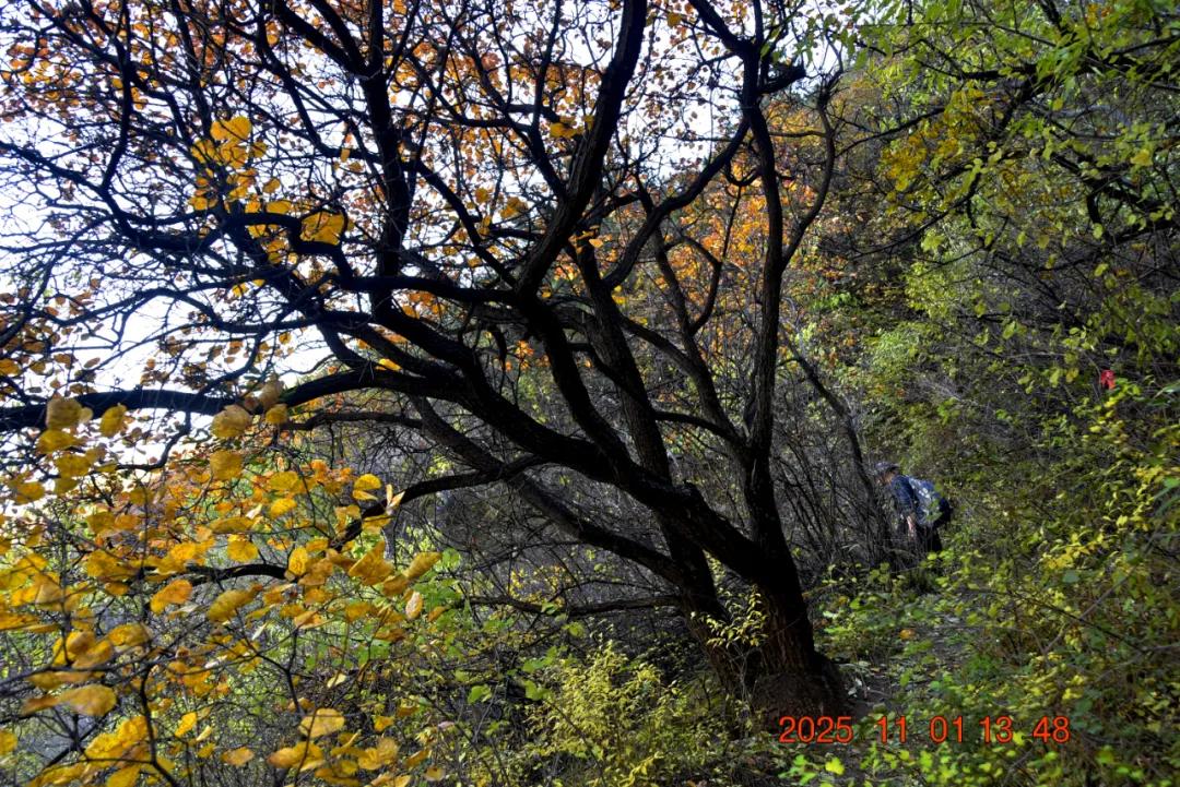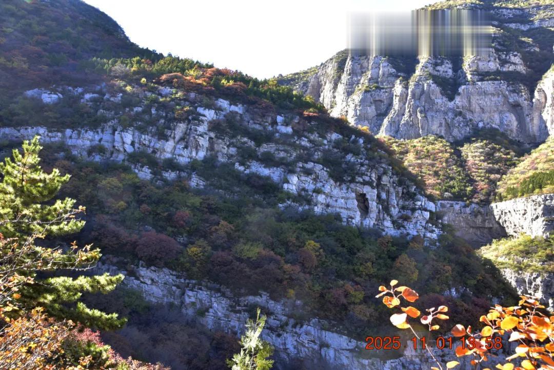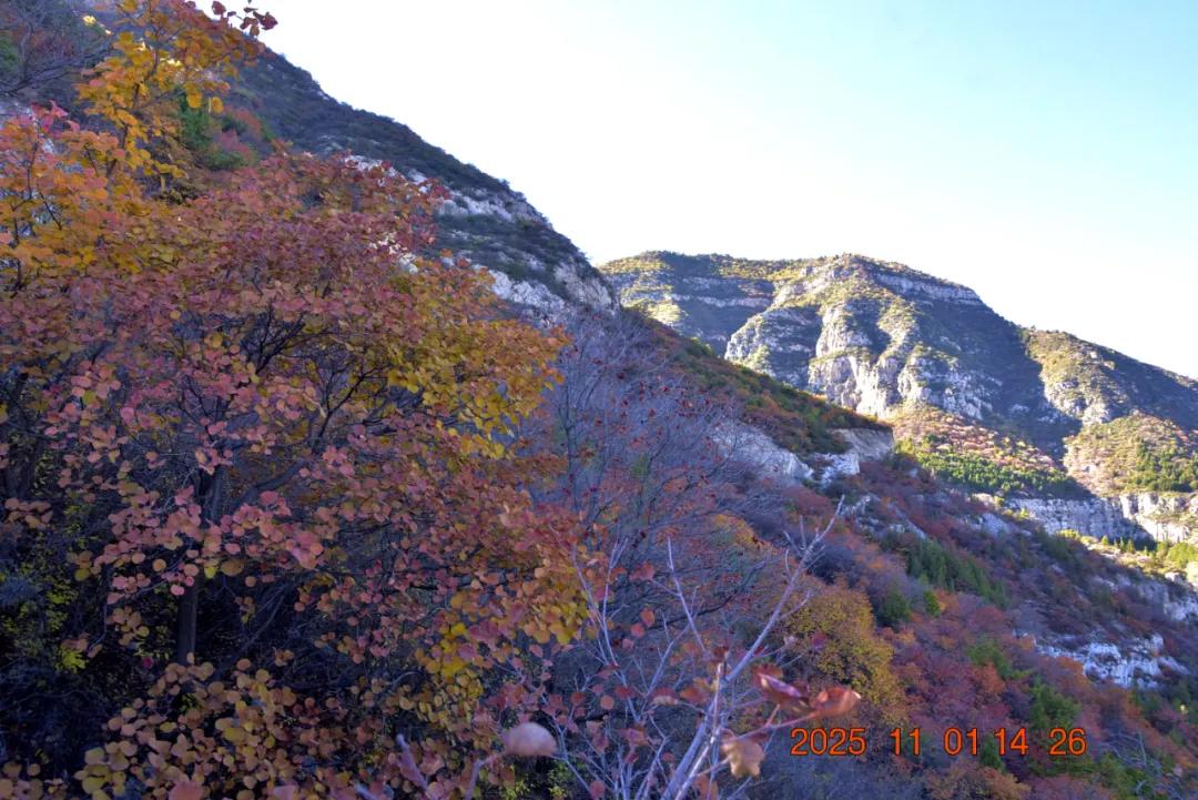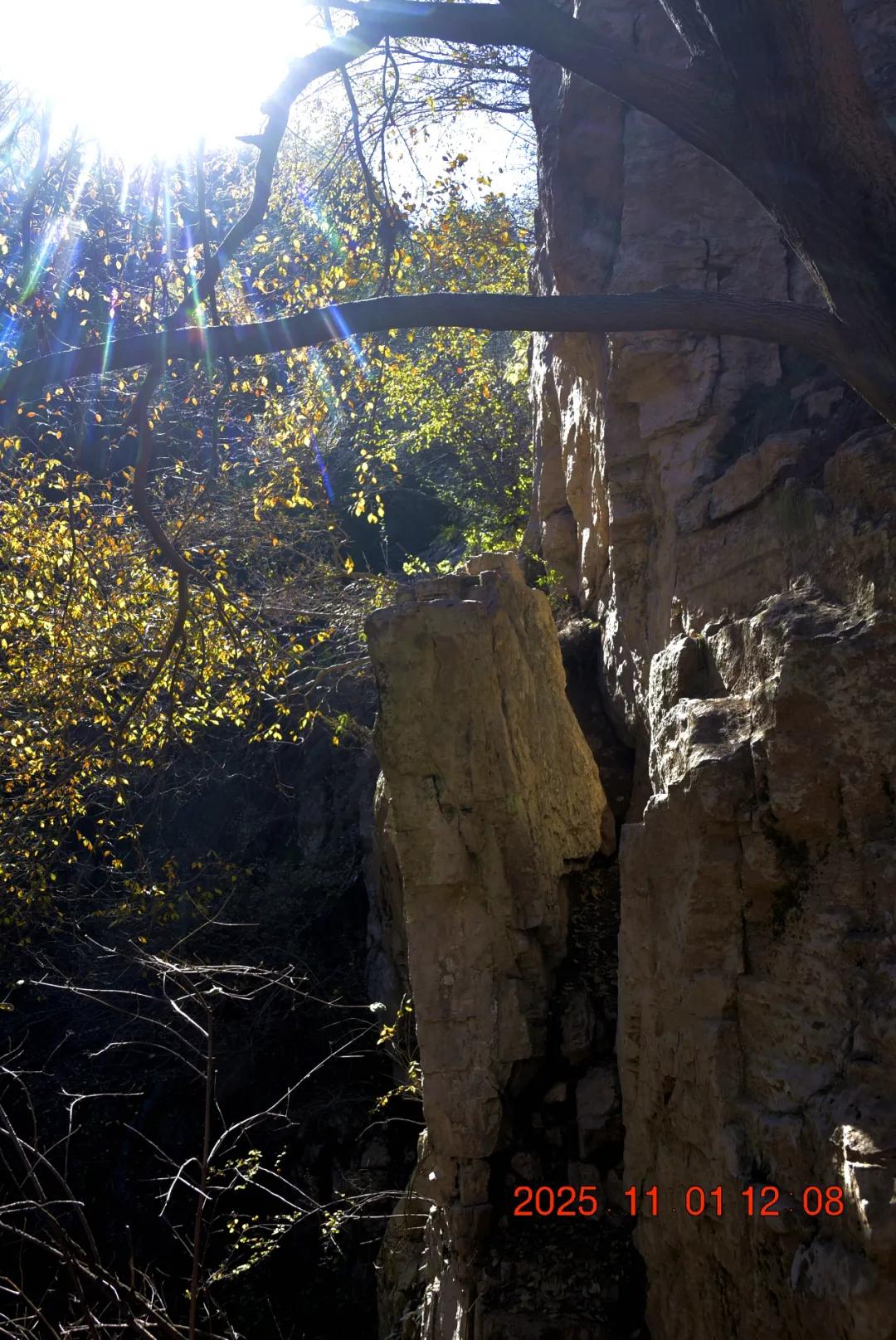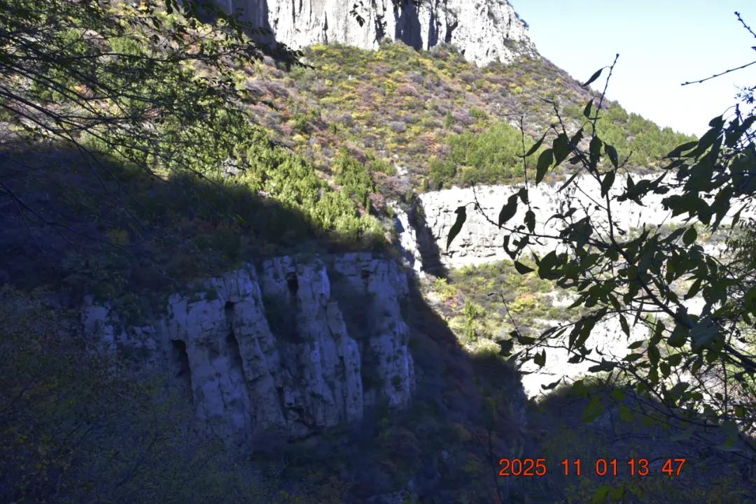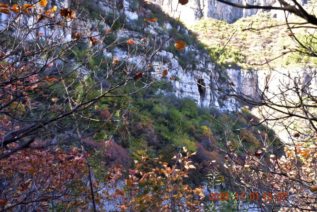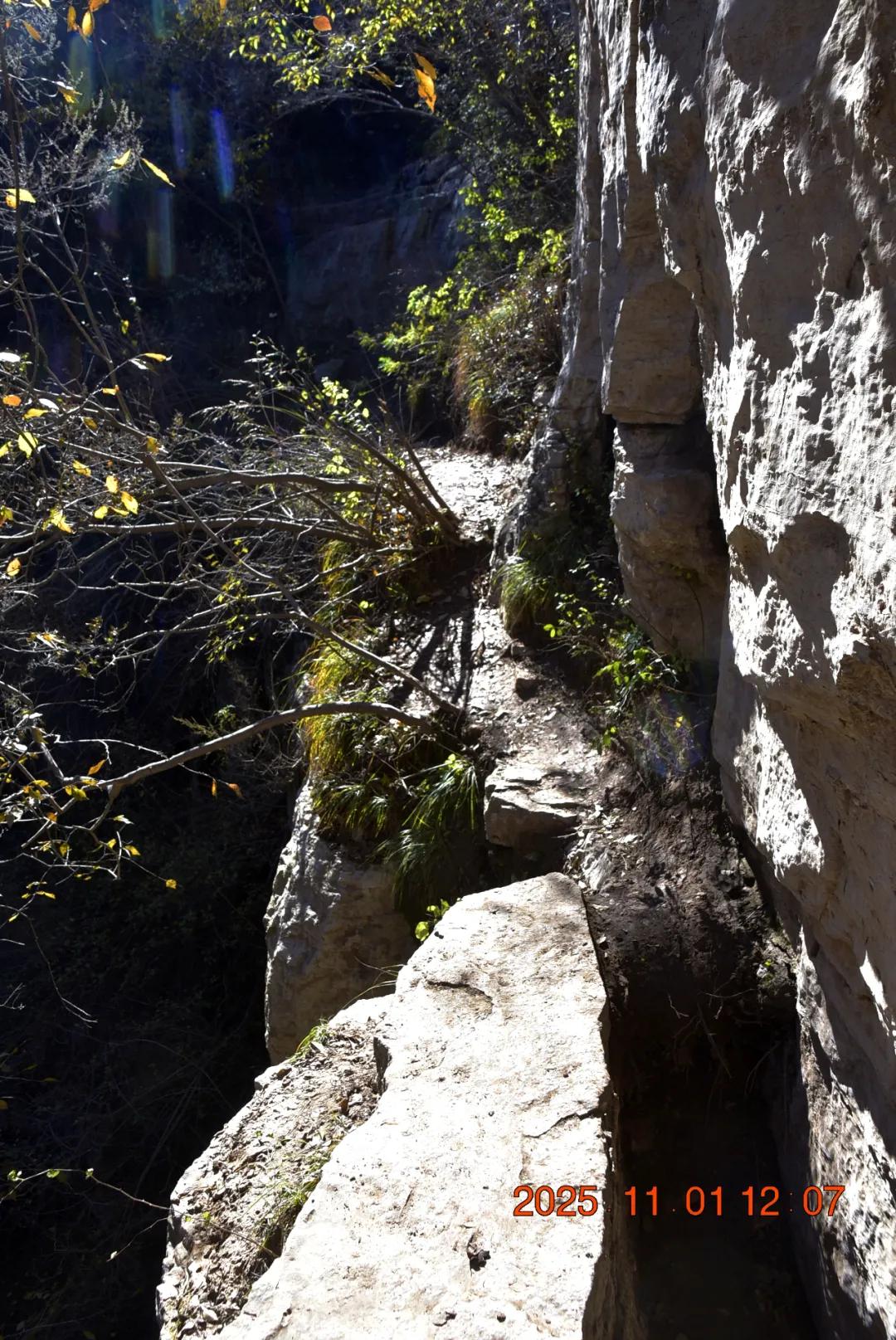 这里的秋景好看些了。悬崖边的小路,好像顺沟直接也可以出去。