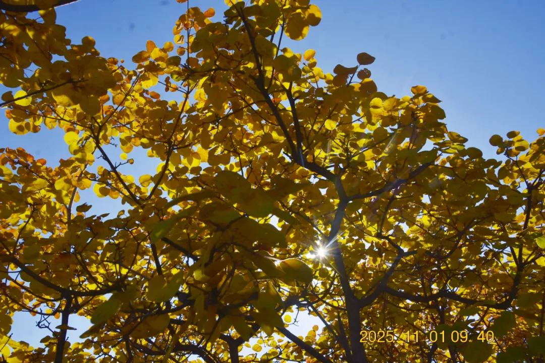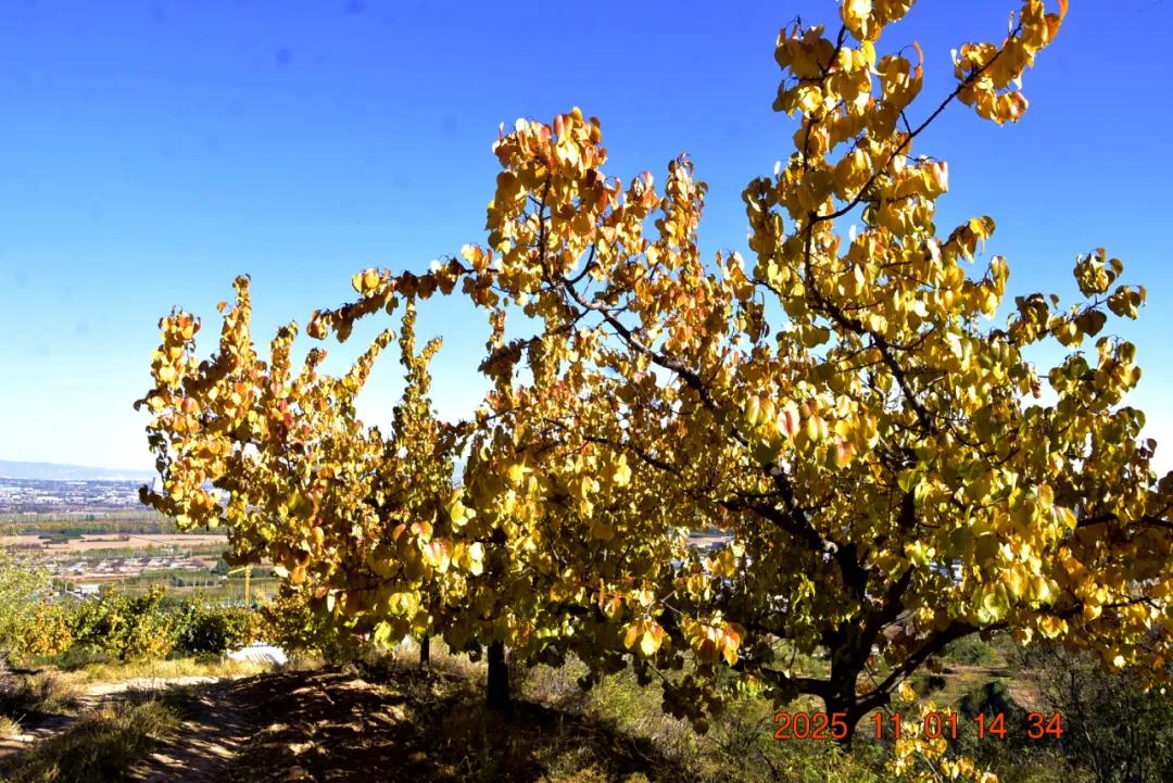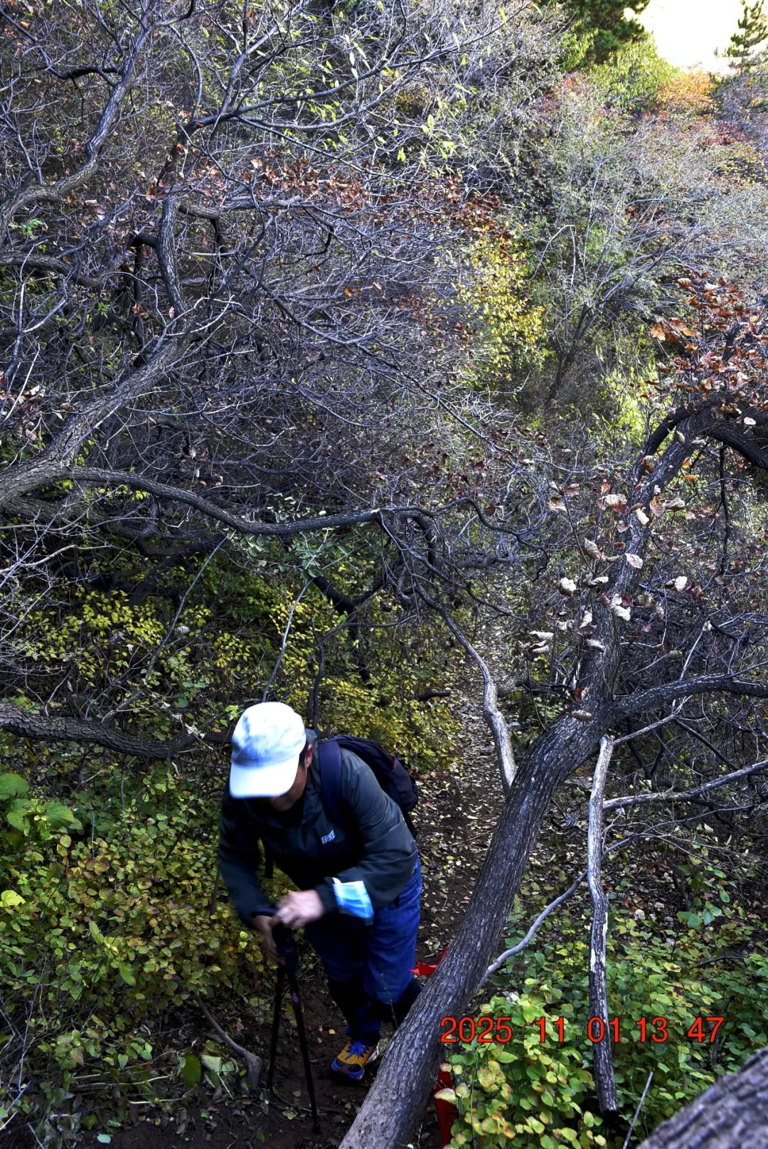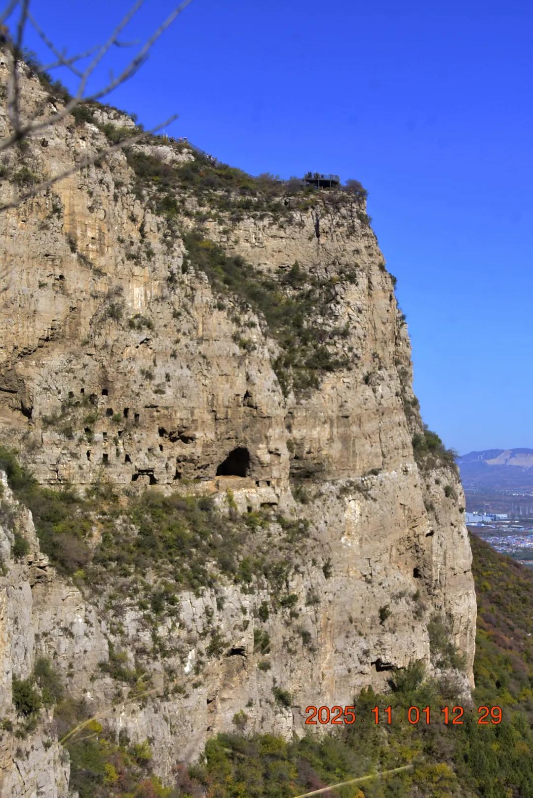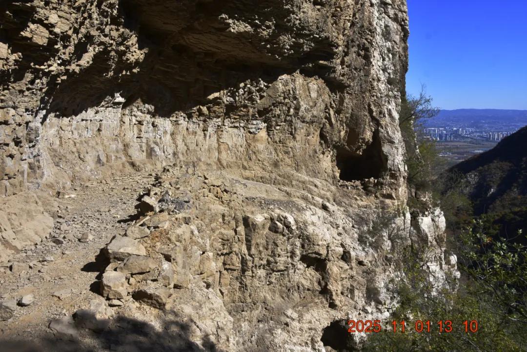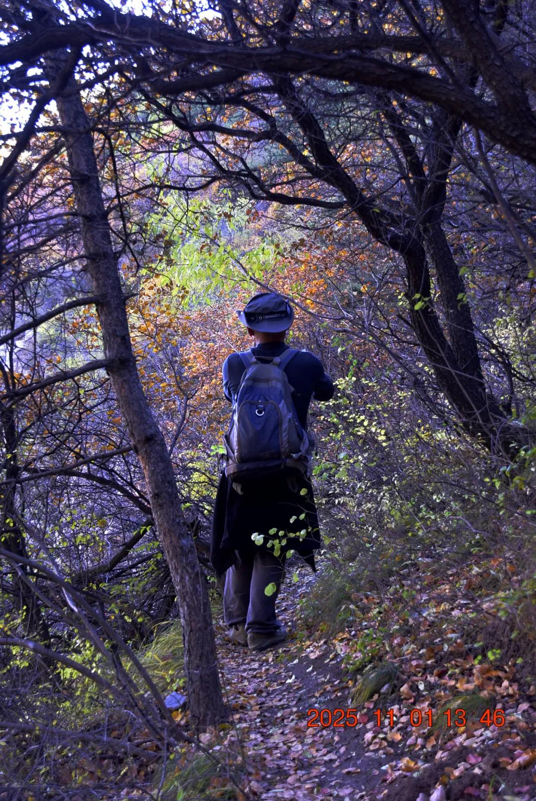 这里的秋景好看些了。悬崖边的小路,好像顺沟直接也可以出去。