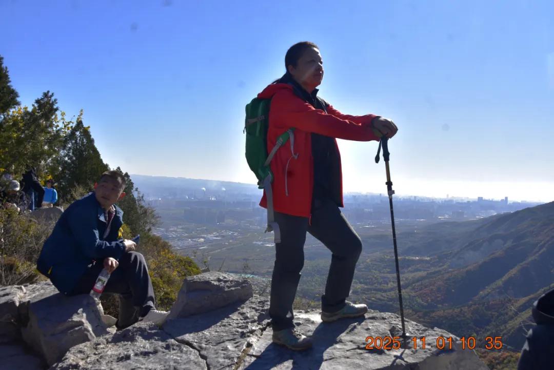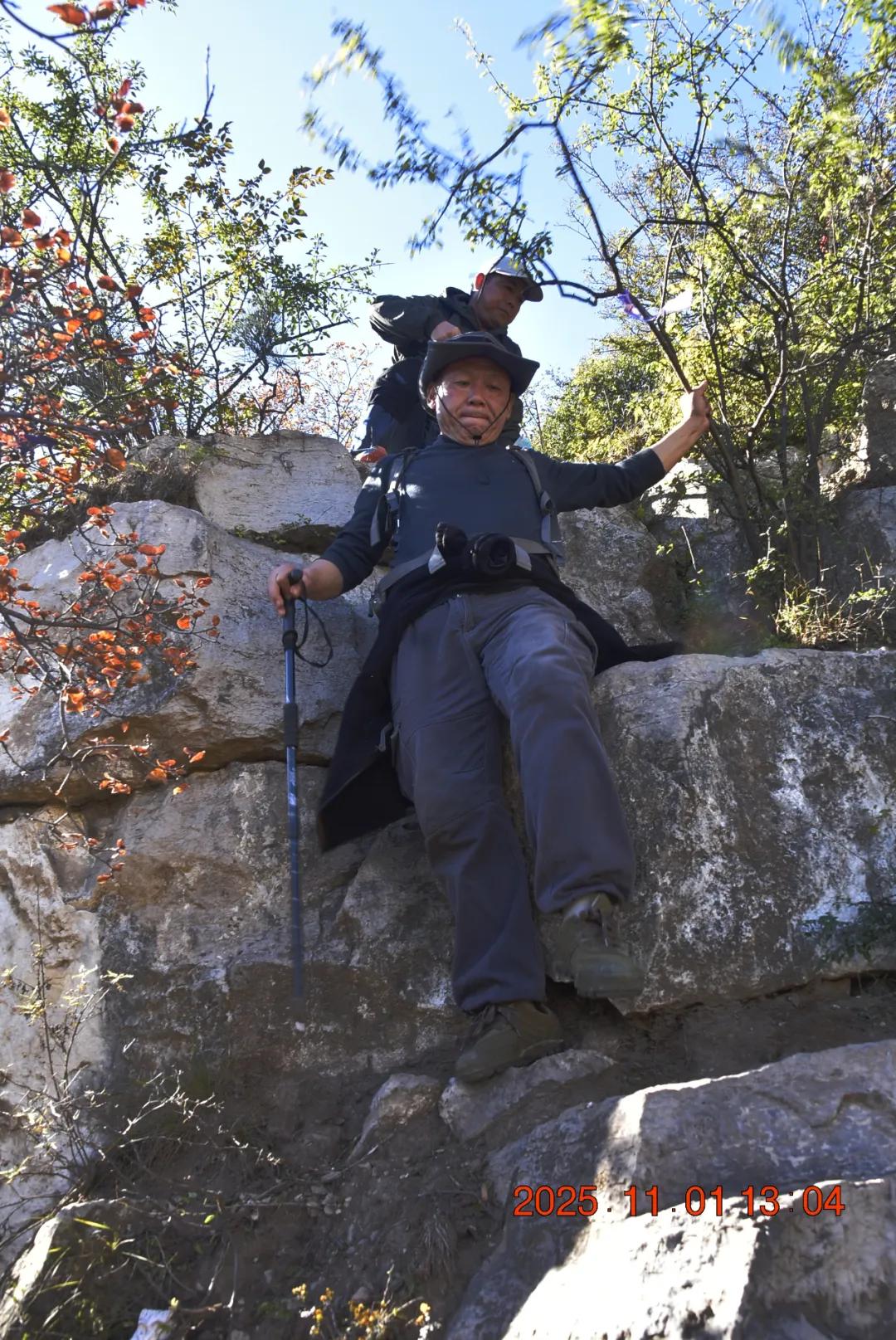 那老姐自豪的说自己七十多了,还来爬山,七十多岁爬山挺好,七十多岁还能户外就真的非常牛了。