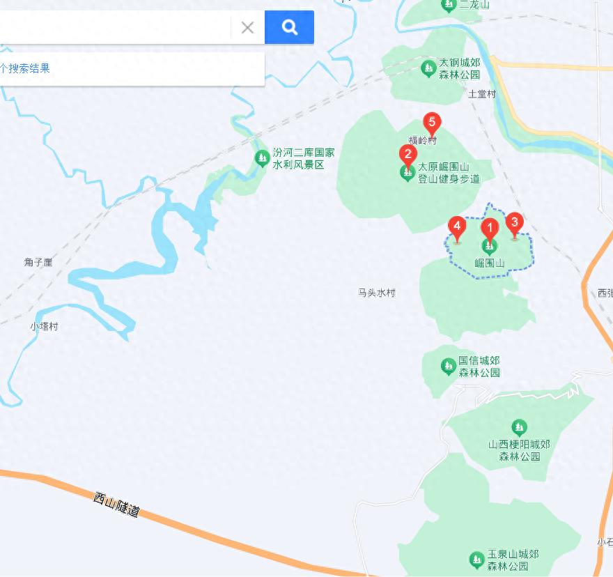 崛围山坐落于太原市西北方向,紧邻汾河西岸,位于呼延村以西,距离市中心大约20公里之处。在汾河的西边,山的北面就是汾河二库。