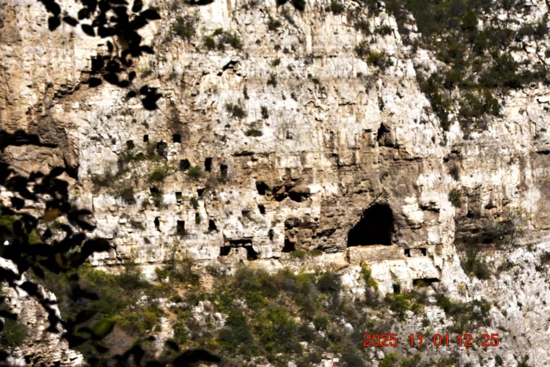 仔细看一下悬崖上的避难所,有很多人垒的墙,