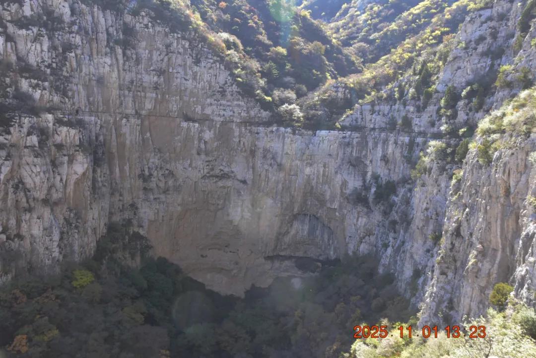 到了天坑顶上了,可以看到侧面的三仙洞和很多的避难所,从这个角度,你肯定想象不到,那里居然可以走过去。还能下到天坑沟底。
