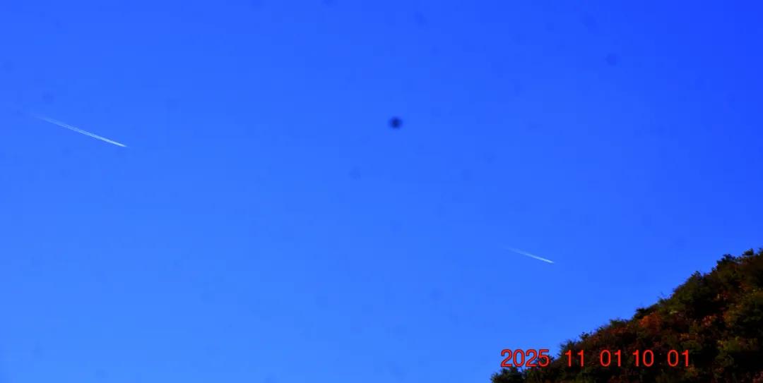 天空中有三架飞机排队飞机,不知道是训练还是干啥,