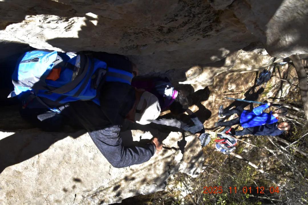 下面就是天坑,遇到一帮上来的驴友,说路线有些难,还有个驴友认识我,去年好像要和我去西藏来,最后没能成行,