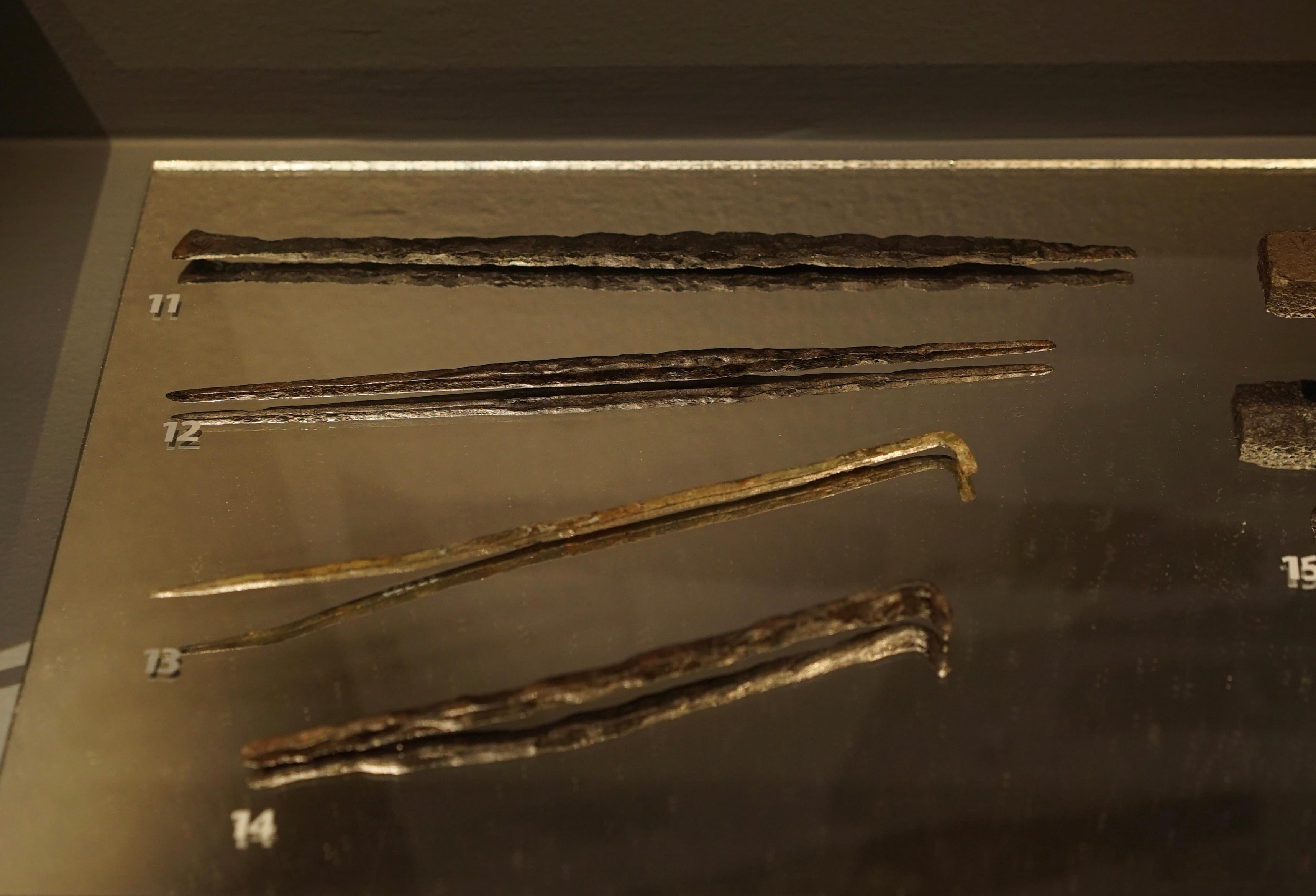 【希腊化时代金匠的工具】1977年,考古学家在波斯尼亚奥沙尼奇的希腊化时代城址中发现了一处窖藏,其中包含245件公元前2世纪前后的文物,总重达34公斤。令人惊喜的是窖藏中有一套金匠的工具和各类的珠宝及半成品。这套工具由铁和青铜制成,包括用于拉丝成型的工具、用于制作耳环或项链金属吊坠的模具、铁砧和锤子等。这些工具使学者们得以重构耀眼夺目的希腊化时代珠宝背后的制作工艺。