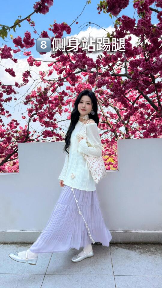 拍照📸 站姿拍照 拍照姿势 拍照姿势不同样 出去玩这样拍 全身拍照姿势 春天拍照 樱花 樱花树下站谁都美 花树下拍照