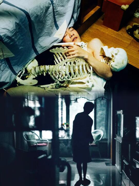 抱着骷髅骨架睡在行李箱里,其实是对自我重生的渴望吧。