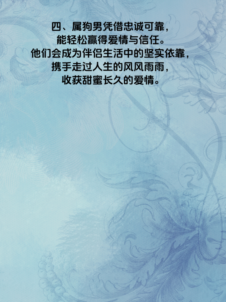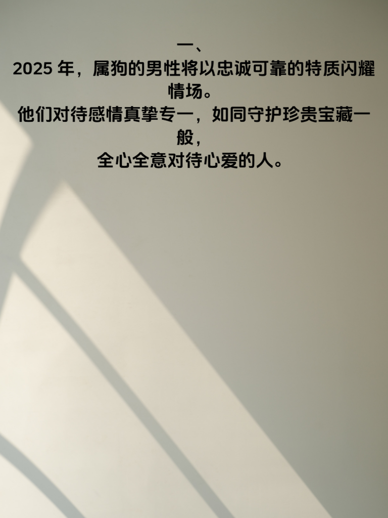 一、2025年,属狗的男性将以忠诚可靠的特质闪耀情场。他们对待感情真挚专一,如同守护珍贵宝藏一般,全心全意对待心爱的人。 二、属狗男的忠诚,是感情稳定的基石。在相处中,他们会用行动证明自己的心意,让对方时刻感受到安心与被爱。 三、追求属狗男的女生们,要懂得欣赏他们的这份忠诚。给予他们足够的信任,回应他们的真心,共同营造美好的爱情。 四、属狗男凭借忠诚可靠,能轻松赢得爱情与信任。他们会成为伴侣生活中的坚实依靠,携手走过人生的风风雨雨,收获甜蜜长久的爱情。
