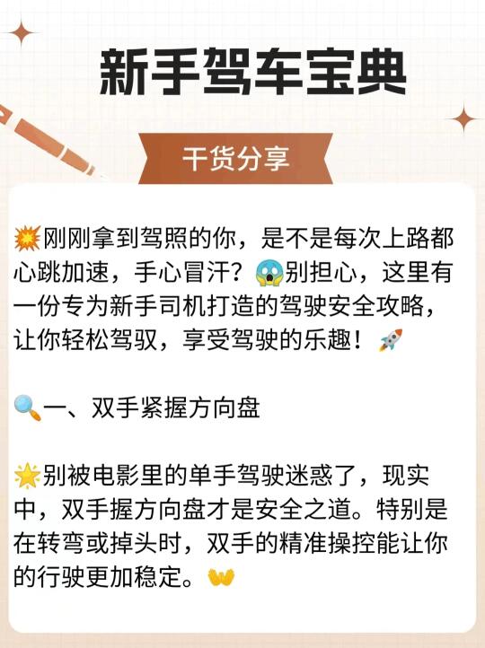 🎉刚拿到驾照的你,是不是对上路既期待又紧张?别担心,这里有一份超实用的新手驾驶安全攻略,让你秒变老司机,享受驾驶的乐趣!✨