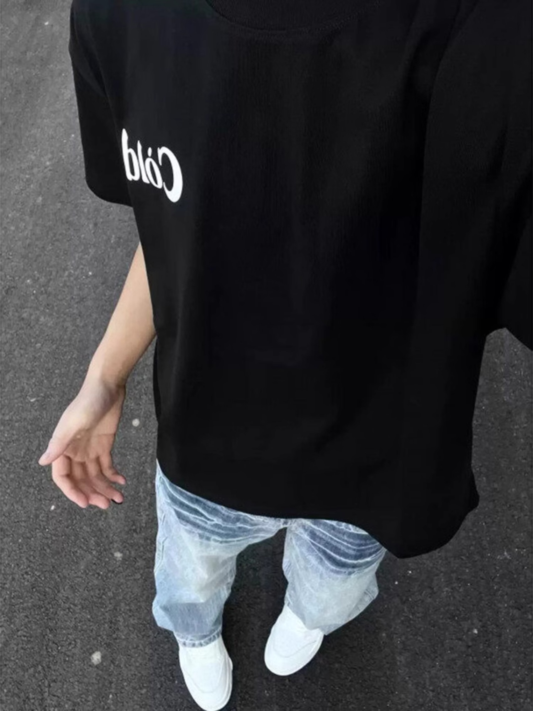 美式高街发泡印花短袖男款夏季纯棉重磅t恤