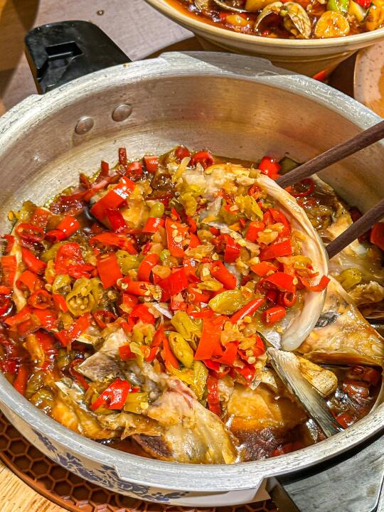 光瓦罐汤就是15款选择,老火慢炖,营养价值丰富,均价12元起,玉米肋排汤太好喝了。 - 明档大厨猛火爆炒,每道都是经典的江西菜,推荐黄豆烧鸡爪,高压锅鱼头,宁都三杯鸡。 - 好吃到一周来了三次,清炖牛骨髓汤真百喝不厌,人均性价比很实惠,很适合亲友聚餐。 -