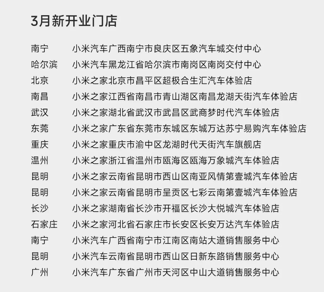 小米汽车开店新进展: