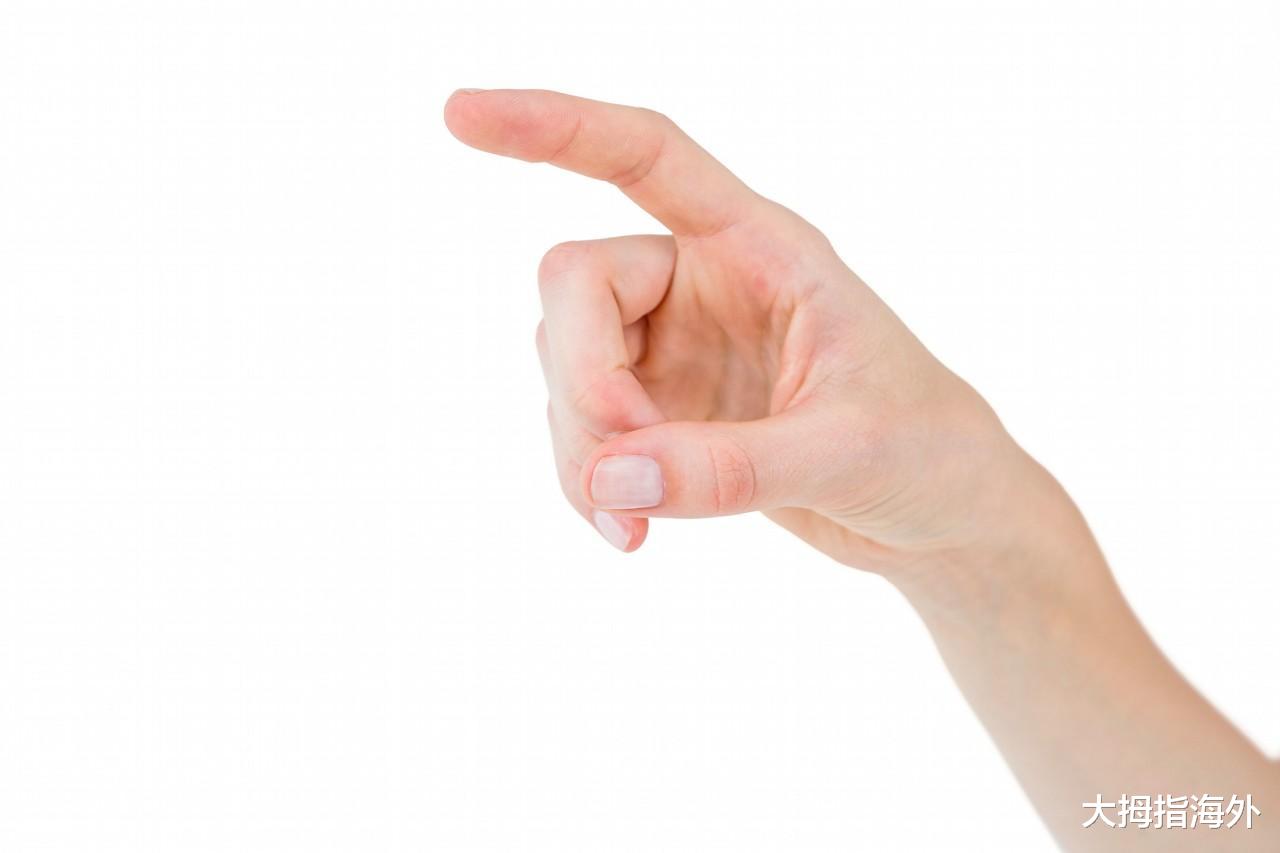 文字图解:小指+食指伸直,拇指压住中指指甲。