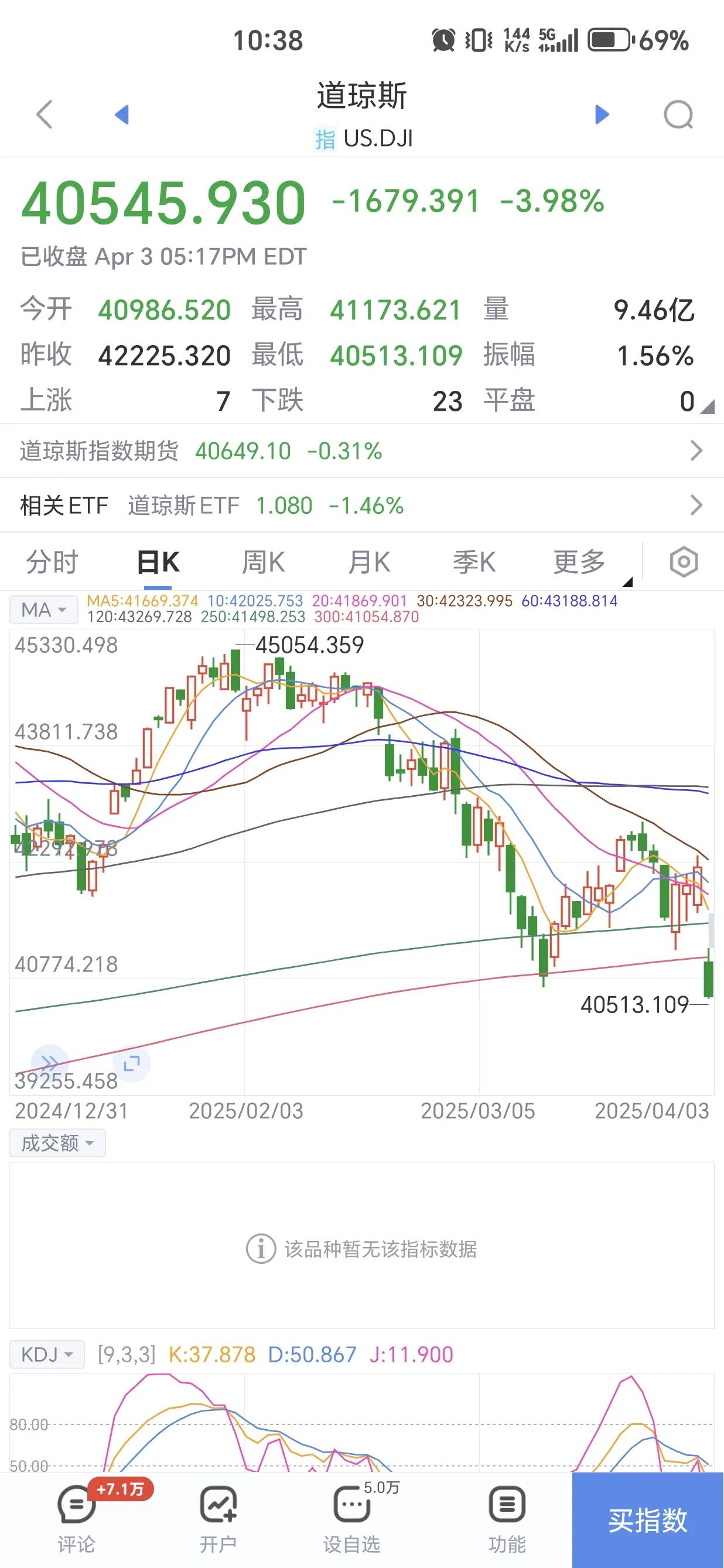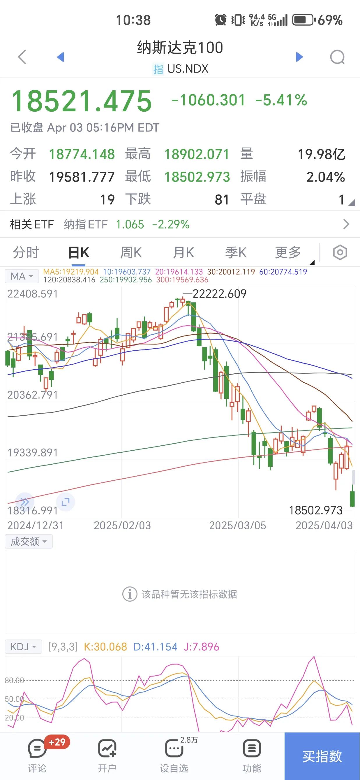 人生与投资什么是有用的思考? 美股暴跌,科技神话值得怀疑??? 昨夜美股在川普关税大棒下暴跌,成为继2020年疫情熔断后最大跌幅。 道指下跌3.98%,纳指下跌5.97%,纳指100下跌5.41%。 美股三大指数均大幅收跌,创2020年3月以来的最大单日跌幅;标普500指数跌4.84%,道指跌3.98%,均为2020年以来的最大单日跌幅。费城半导体指数大跌9.88%,创2020年3月以来最大单日跌幅。KBW银行指数下跌9.86%,创地区性银行危机以来最大跌幅。罗素2000指数下跌6.6%,创下2020年以来最大跌幅。大型科技股普跌,苹果跌超9%,亚马逊、Meta跌逾8%,英伟达跌超7%,特斯拉跌超5%,谷歌跌逾4%,微软跌超2%,奈飞跌超1%;英特尔涨超2%。 美股大跌,且为2020年疫情以来最大跌幅。主要受川普关税政策影响,对全球贸易产生不确定影响。 美股未来怎样? 短期几个月或近一年时间关税会影响并逐步形成新的贸易格局,原本的美国低关税历史结束转而抬高全球商品关税水平或者其他国家降低关税。关税是贸易壁垒的主要原因,美国主动增加进口商品关税,打破长期以来的贸易壁垒,长远看是好事,等于变相降低了关税差距。但是短期引起的波动不可预测。