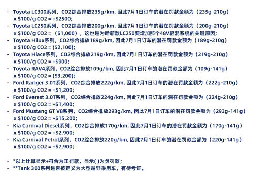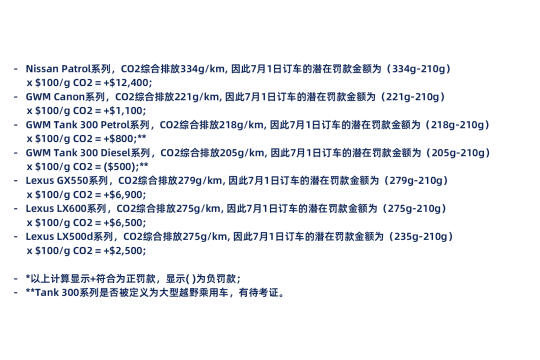 [爆炸R]重点敲黑板 - 对于消费者意味着,对某些CO2排放超标的车型,比如一些畅销车型,如:Toyota LC300, Ford Everest 3.0, Ford Ranger 3.0, Kia Carnival, Nissan Patrol, GWM Cannon, Lexus GX, LX, Mazda CX-5, CX-80, Mercedes-Benz GLC, GLE, BMW XI, X5, 如果在7月1日之后订车的合同,可能会因为NVES所对应的罚款金额而造成车价上涨 (注意:NVES CO2计算按照订车合同时间而非交付时间)。
