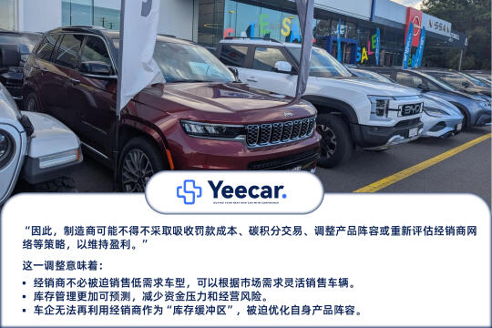 [爆炸R]这一调整意味着,制造商无需强制要求经销商囤积低排放车型,从而降低库存压力并保持更稳定的成本结构。