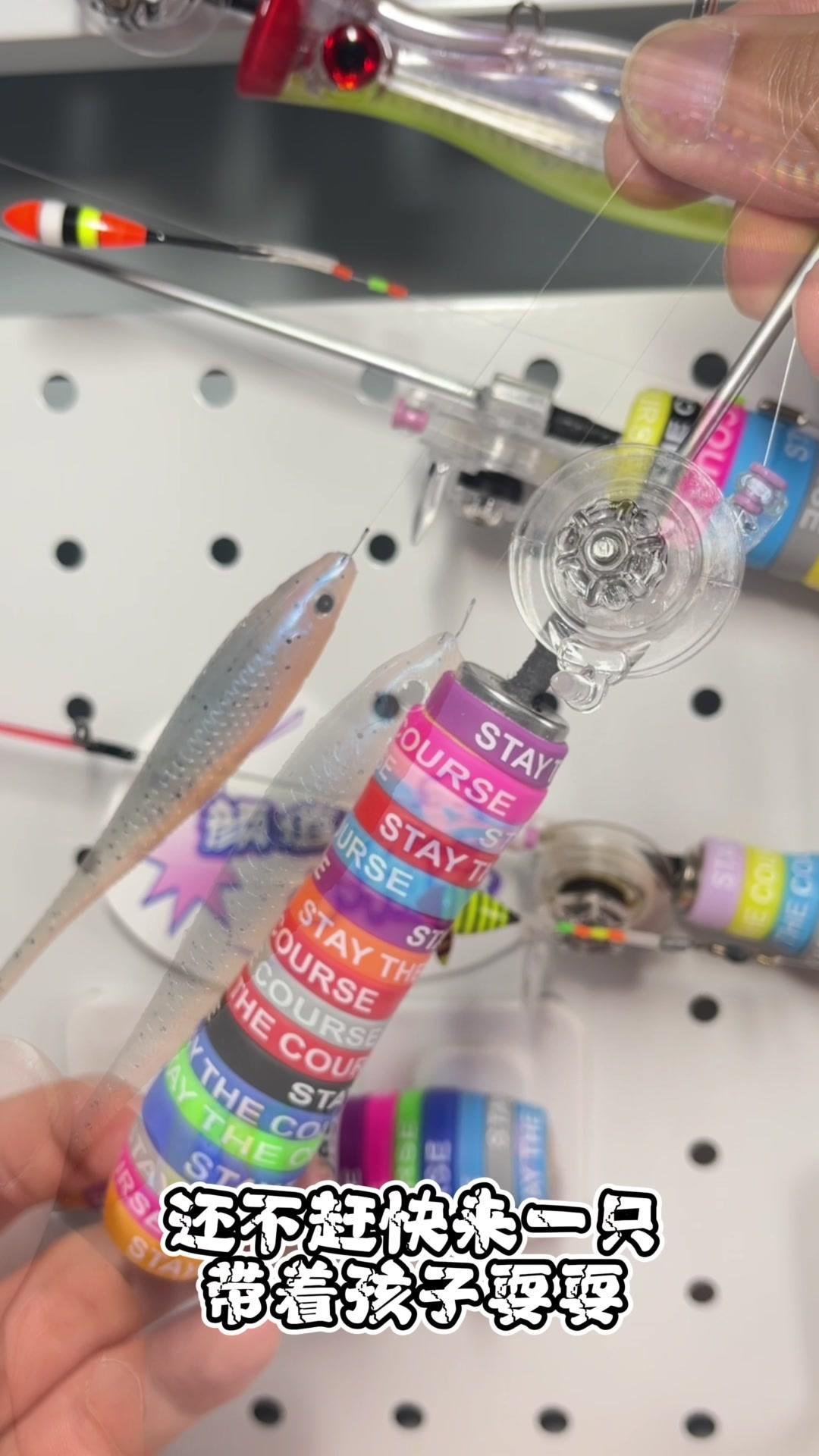 1️⃣手柄配色:很亮眼。 2️⃣鱼轮声:听听这鱼轮声。 3️⃣迷你彩色小浮漂:看看这可爱的迷你彩色小浮漂。 4️⃣鱼钩:米粒大的鱼钩。 带着孩子玩玩,很不错。