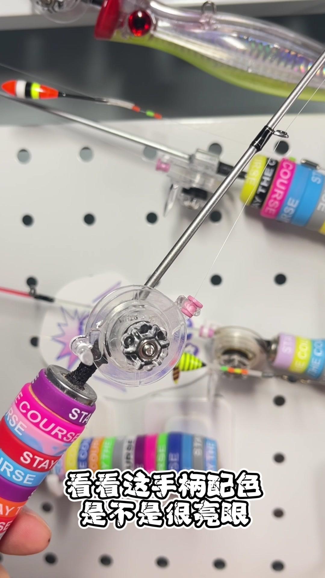 1️⃣手柄配色:很亮眼。 2️⃣鱼轮声:听听这鱼轮声。 3️⃣迷你彩色小浮漂