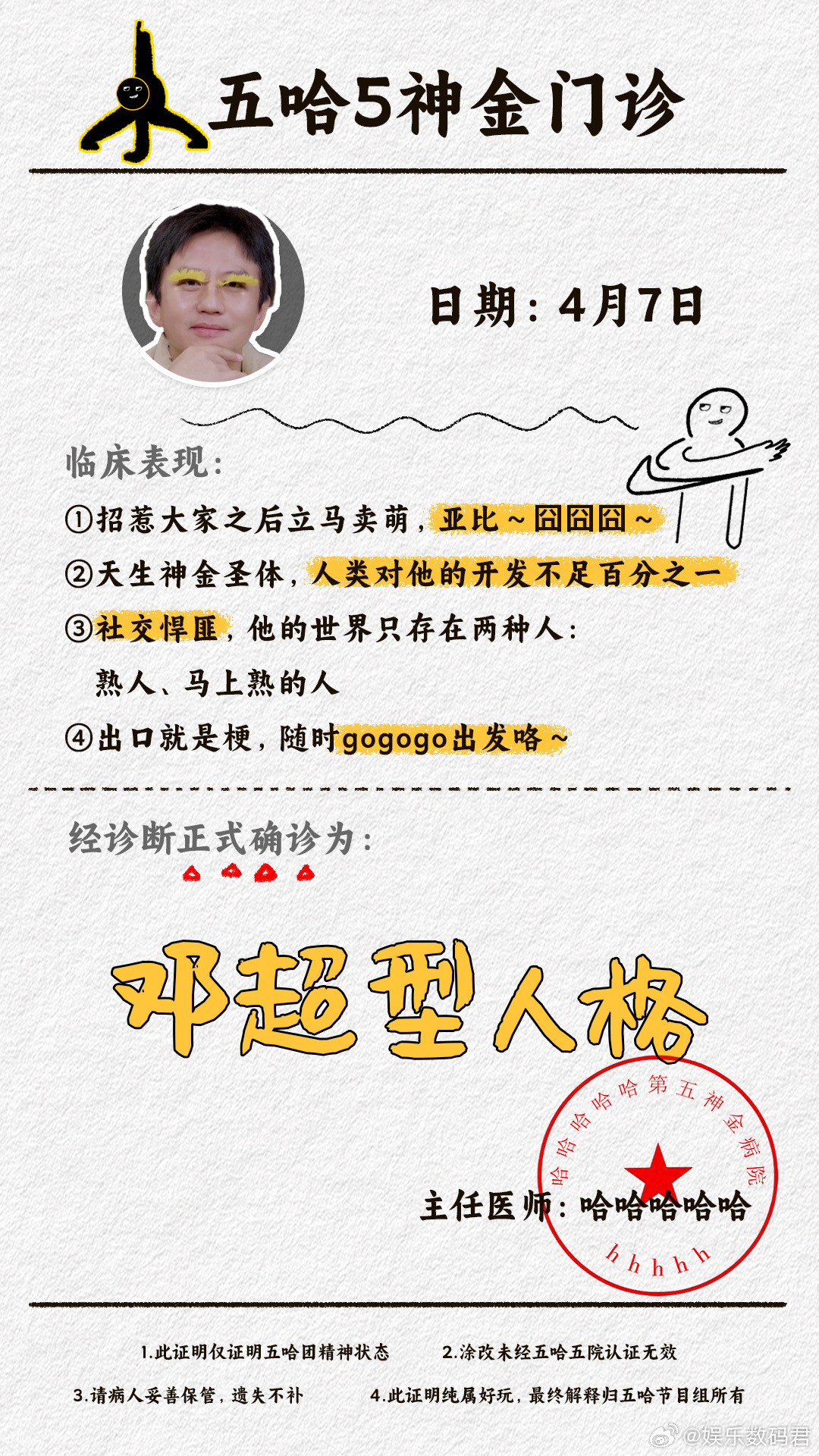 确诊为邓超型人格哈哈哈哈哈 今天体检竟然被确诊为邓超型人格,笑点低,幽默感爆棚,生活充满“意外”和“搞笑”,我准备向超哥学习飞翔!
