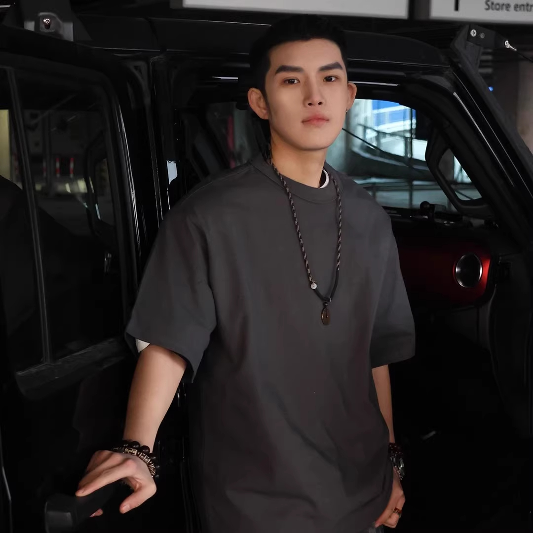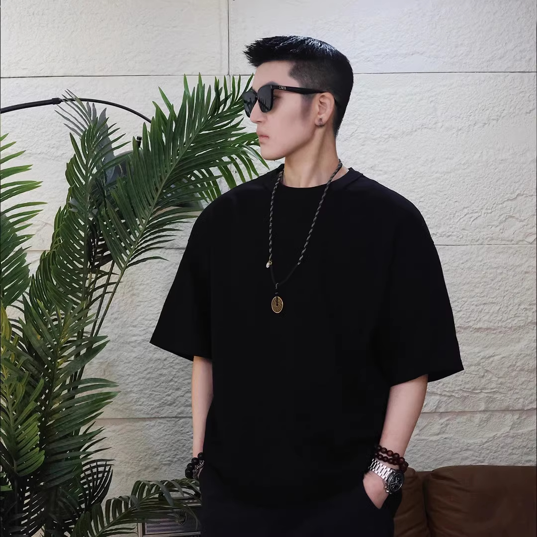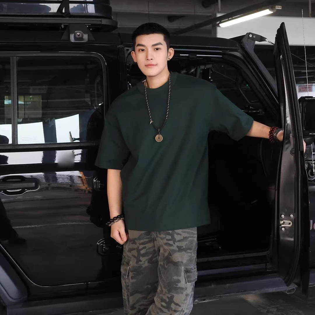 300g重磅墨绿色短袖男款夏季小领口正肩