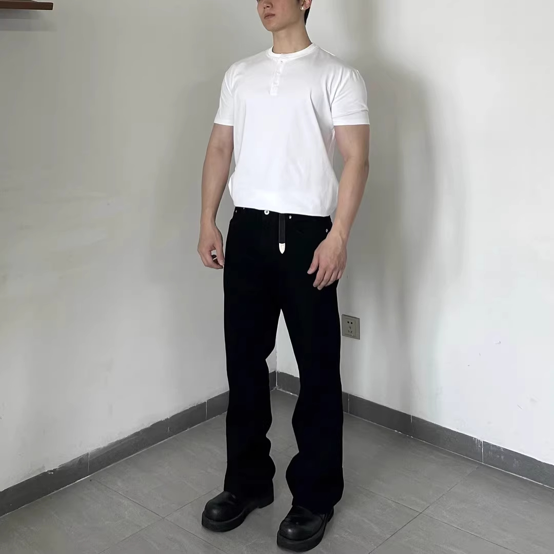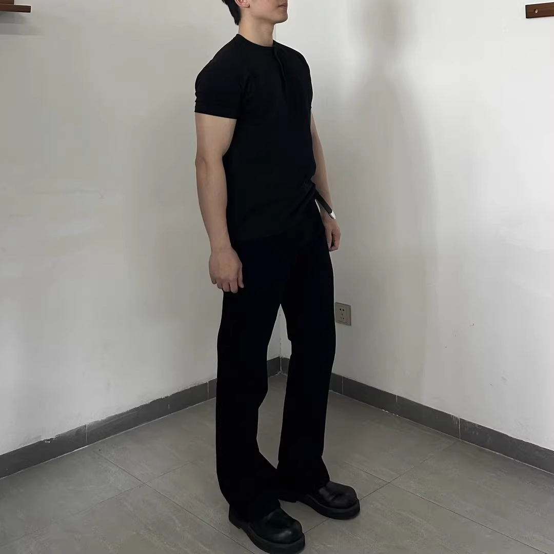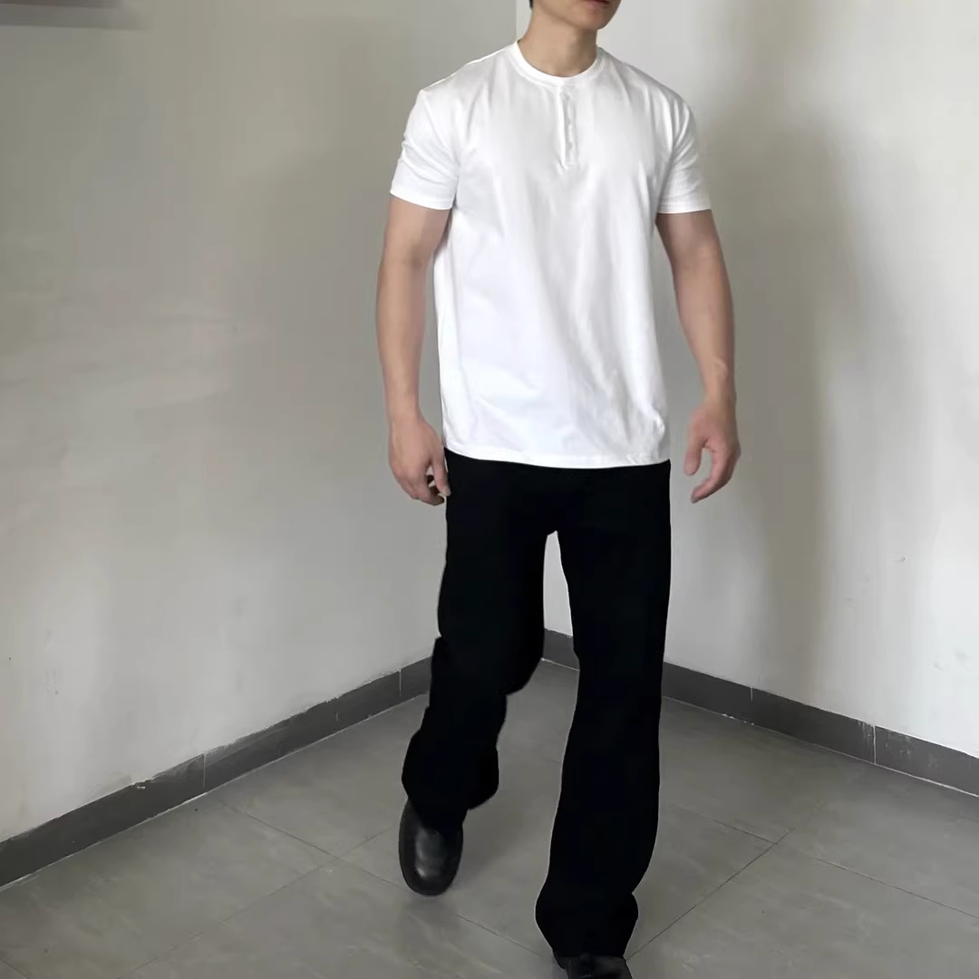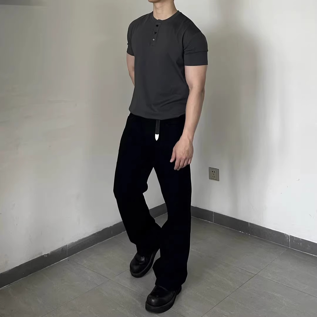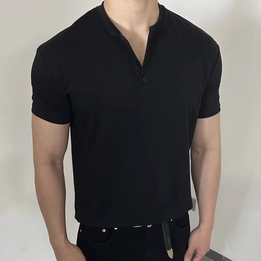 黑色亨利领男士短袖t恤夏季凉感速干修身三