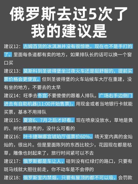 听我一句劝!去俄罗斯玩一定要提前做攻略!该踩的坑我都踩过了,总结了一些血泪教训,按这份攻略轻松玩转俄罗斯✌🏻